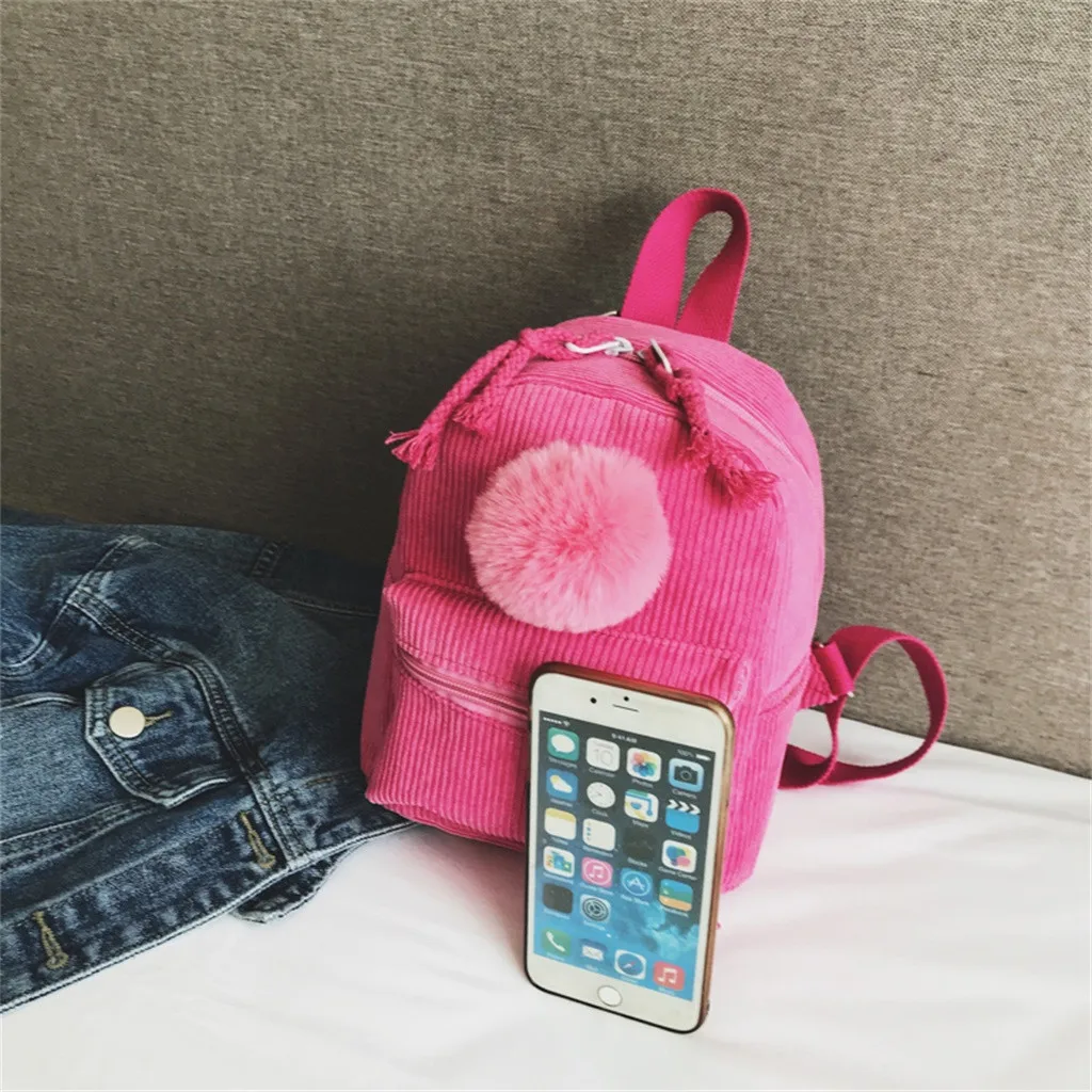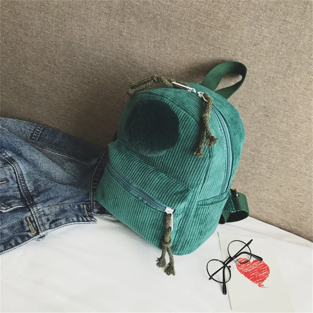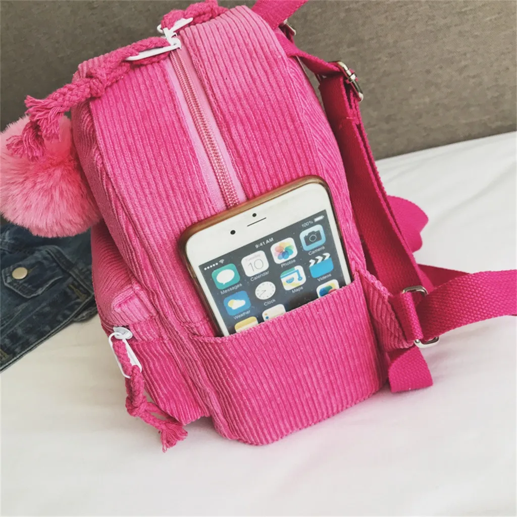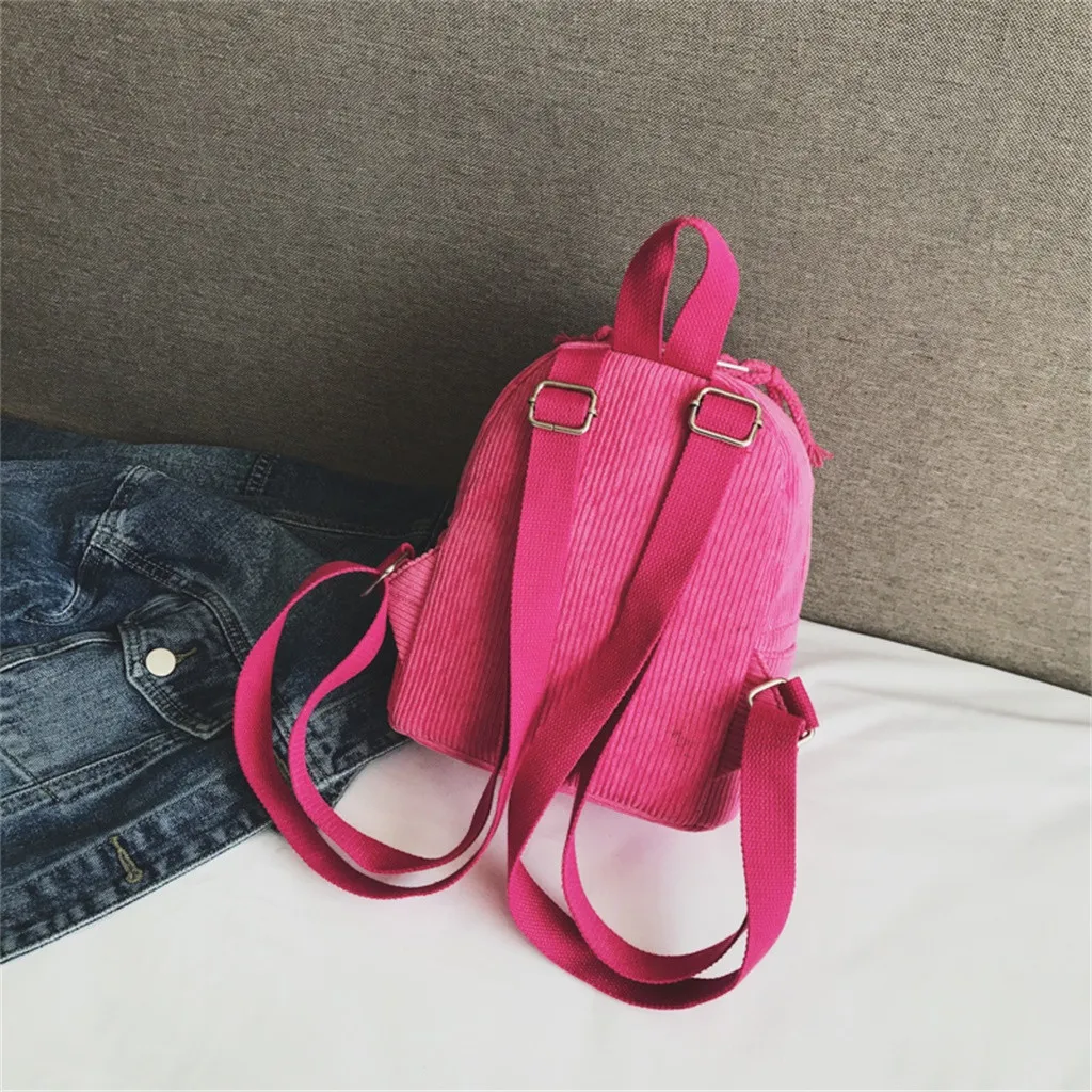 Large Capacity Solid Color Corduroy Casual Backpack School Bag
