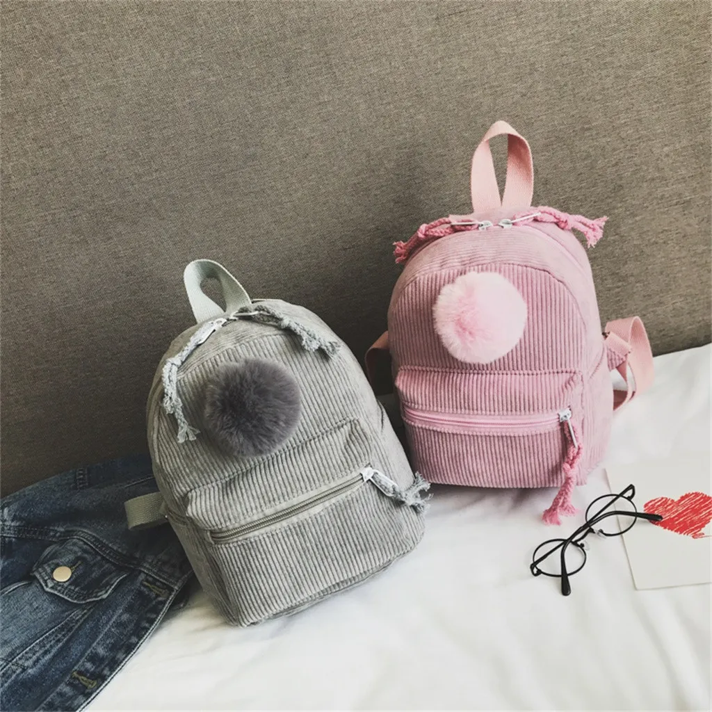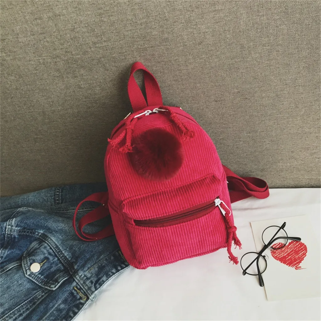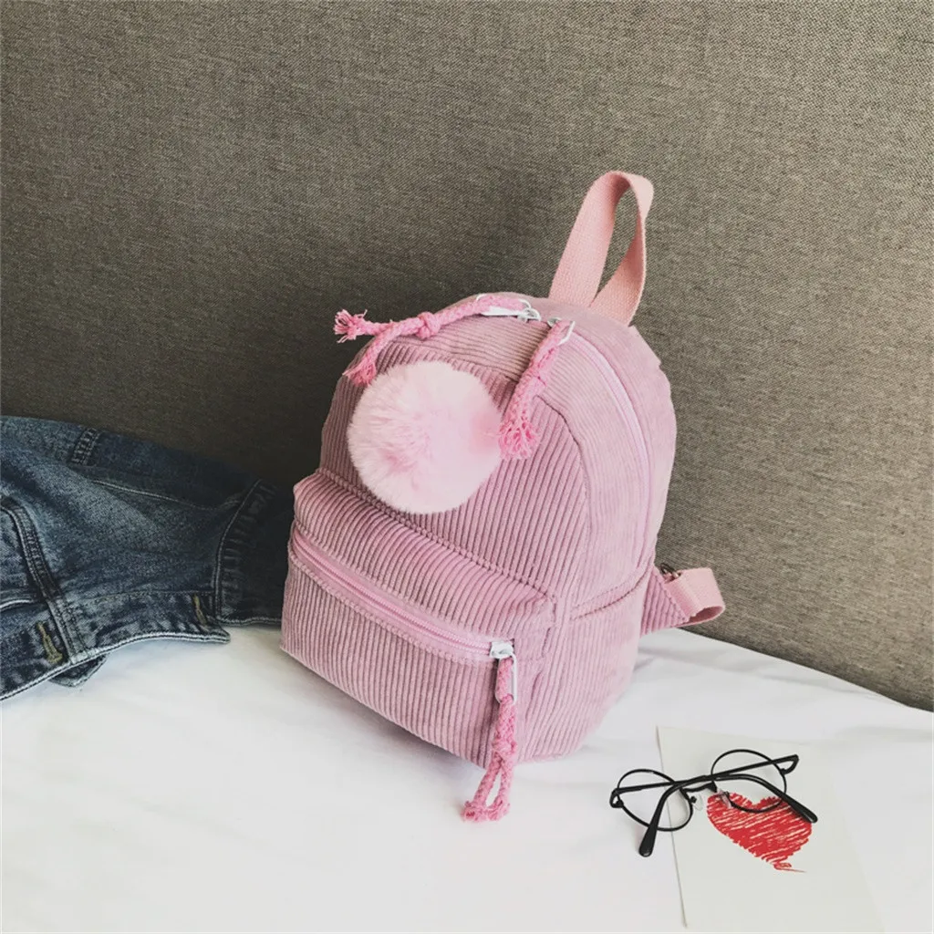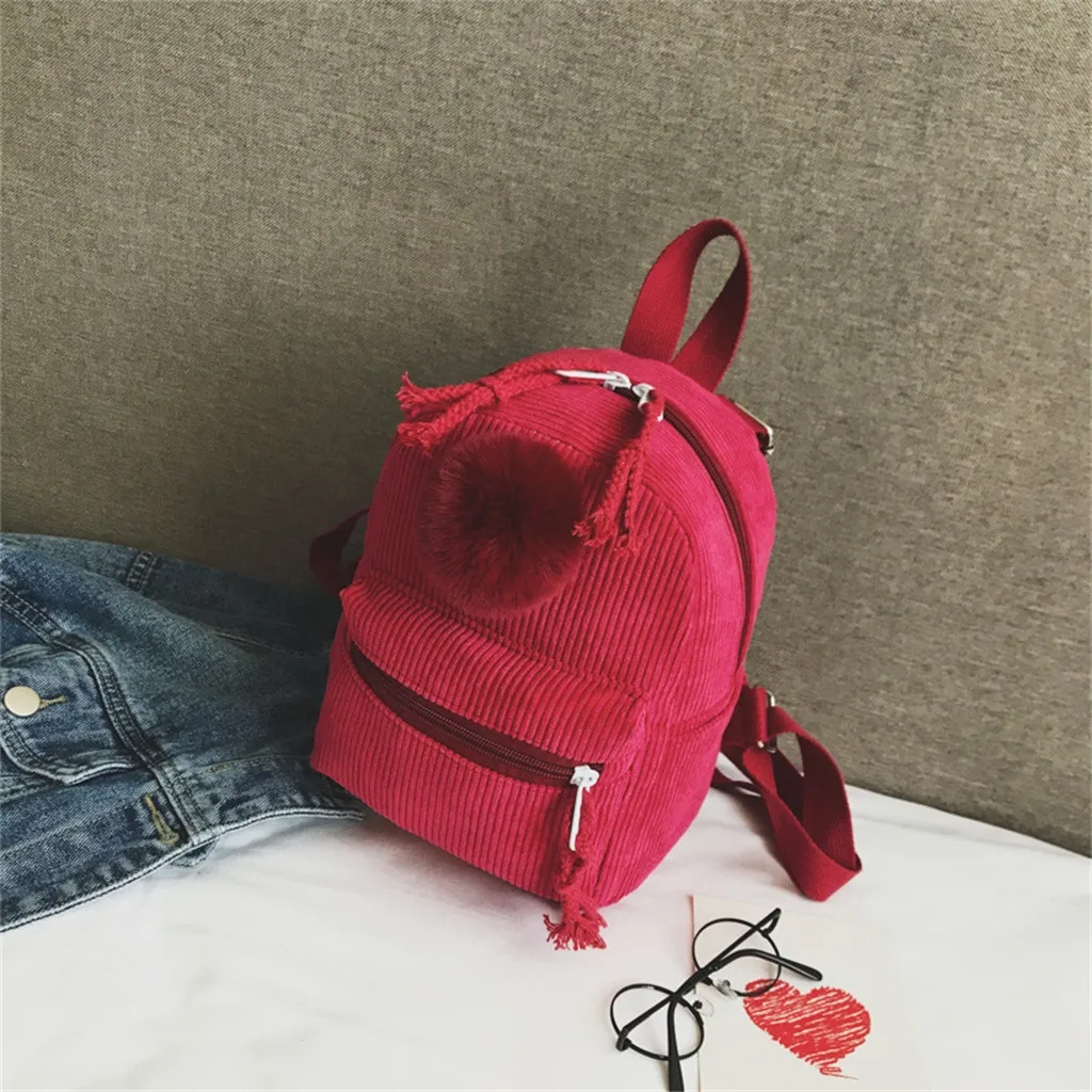 Large Capacity Solid Color Corduroy Casual Backpack School Bag
