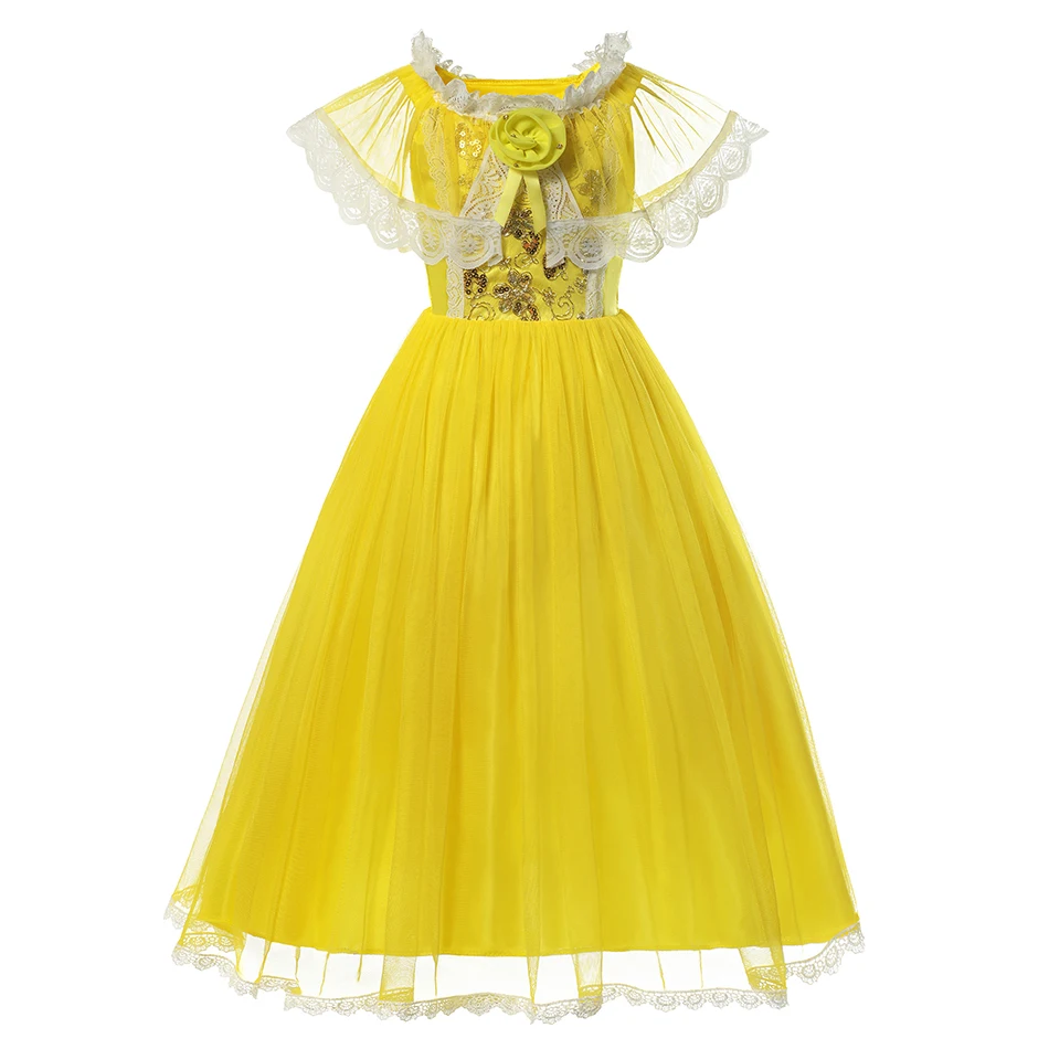 Название: новое платье принцессы Белль для девочек; Карнавальные костюмы Белль; Детские Желтые нарядные платья для детей; Вечерние платья на день рождения, Хэллоуин