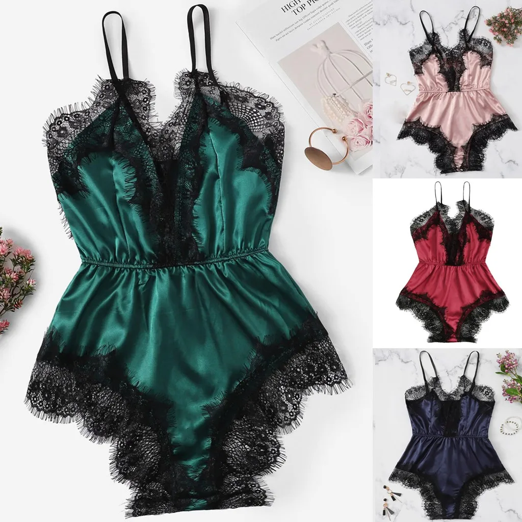 Женское атласное кружевное сексуальное нижнее белье, цельное летнее нижнее белье, сиамское ночное белье, боди, ночное белье, зеленая домашняя одежда
