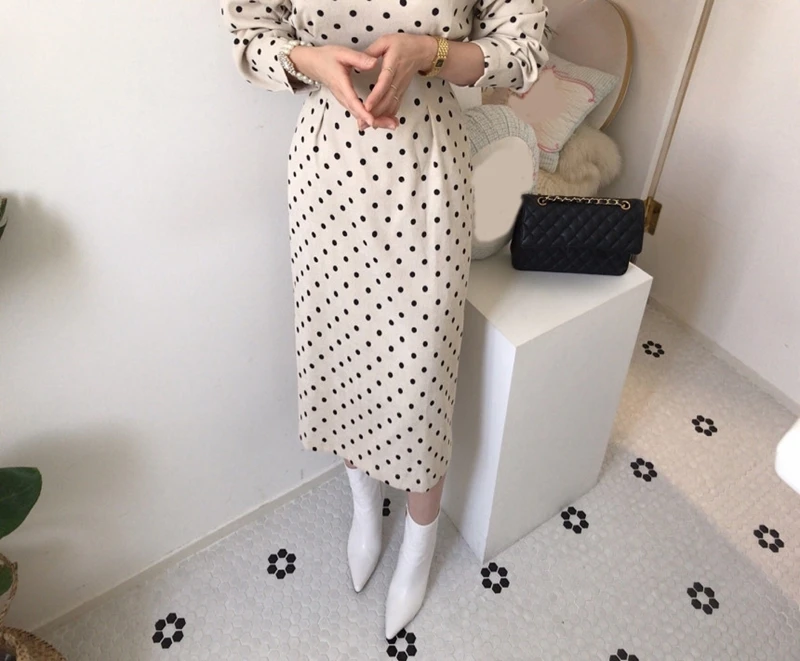 Название:RealShe, женское платье в горошек, 2020, v-образный вырез, длинный Пышный рукав бант, длинное платье, элегантное, весеннее, повседневное, винтажное, женские платья 2020