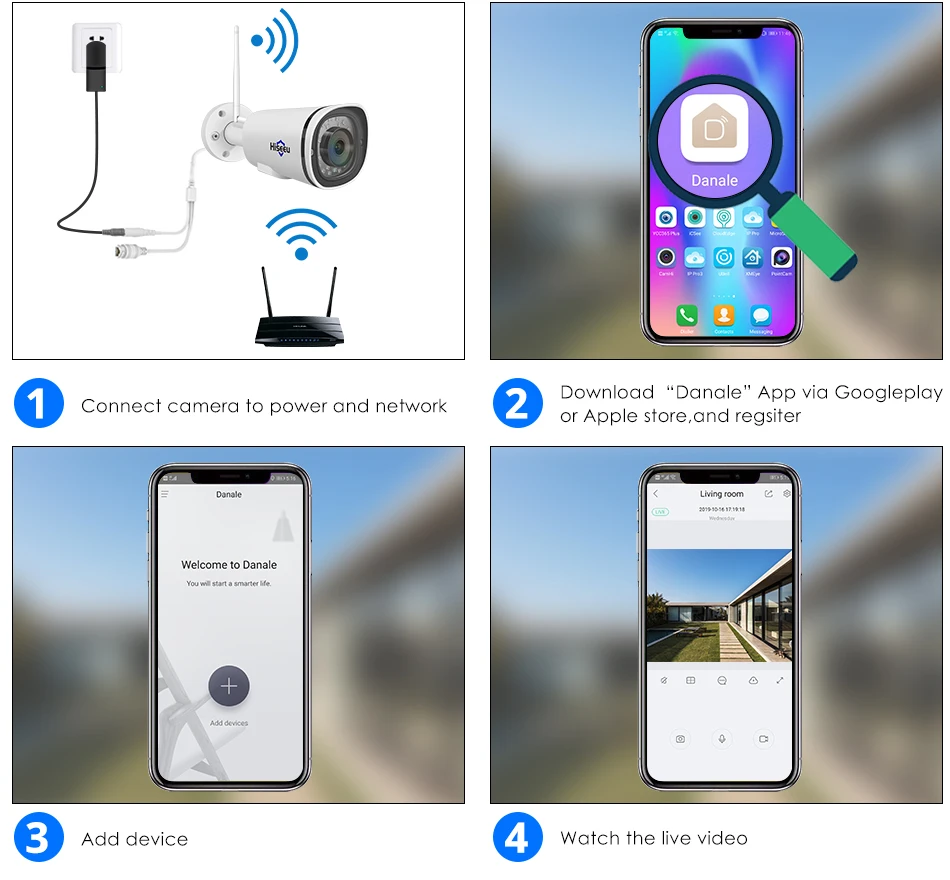 Удаленный просмотр камеры безопасности hiseeu 4k через бесплатное приложение Danale на мобильном устройстве, а также веб-браузер-IE/Chrome/Firefox/Safari.
