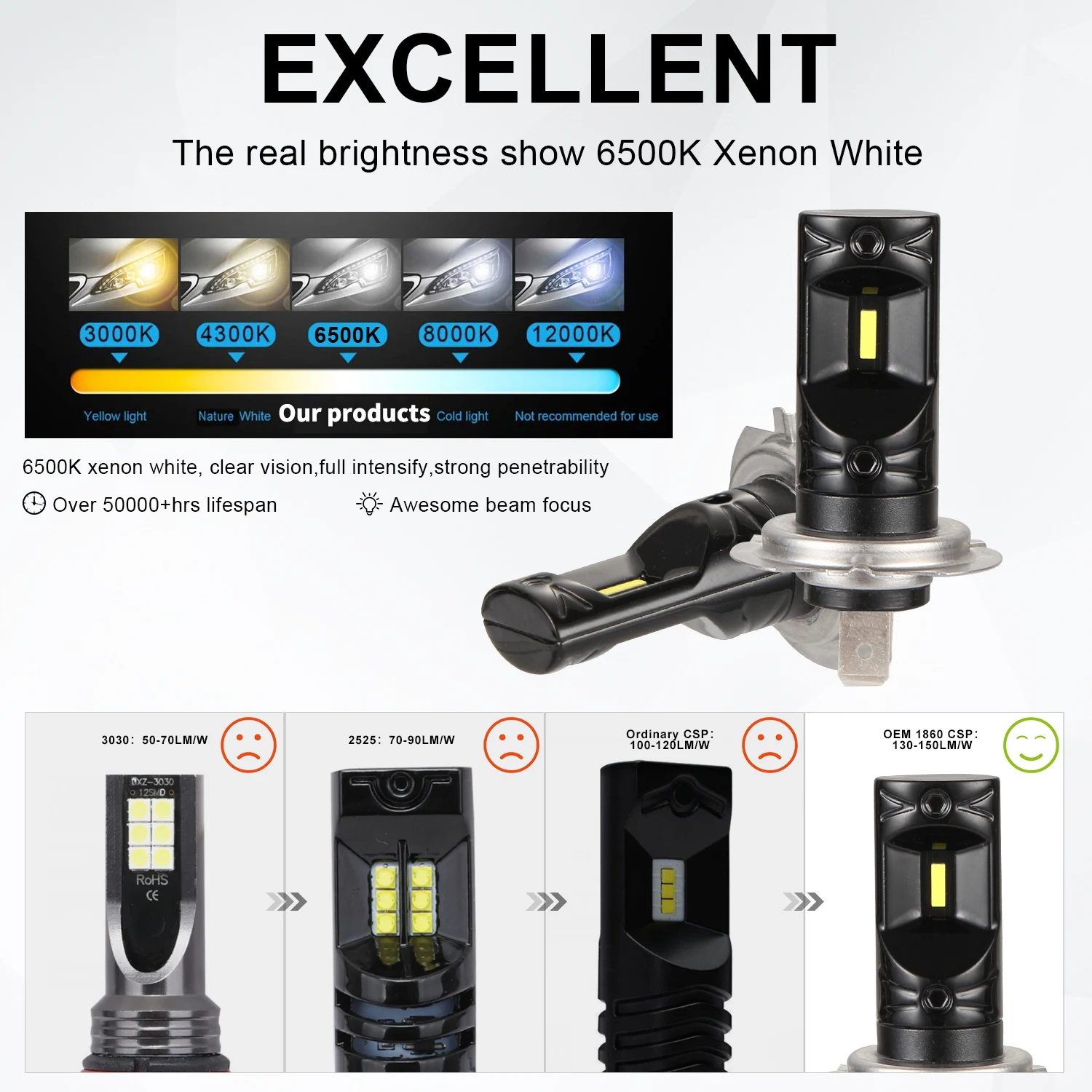 * Изготовлен из высококачественного SMDs, может выдерживать тряску и вибрацию. * Угол обзора 360 градусов устраняет горячие точки. * 6x1860 высокомощных светодиодных ламп CSP намного ярче, чем оригинальные противотуманные лампы, и низкое энергопотребление. * Может заменить большинство автомобилей светильник светодиодный лампы с той же базой.