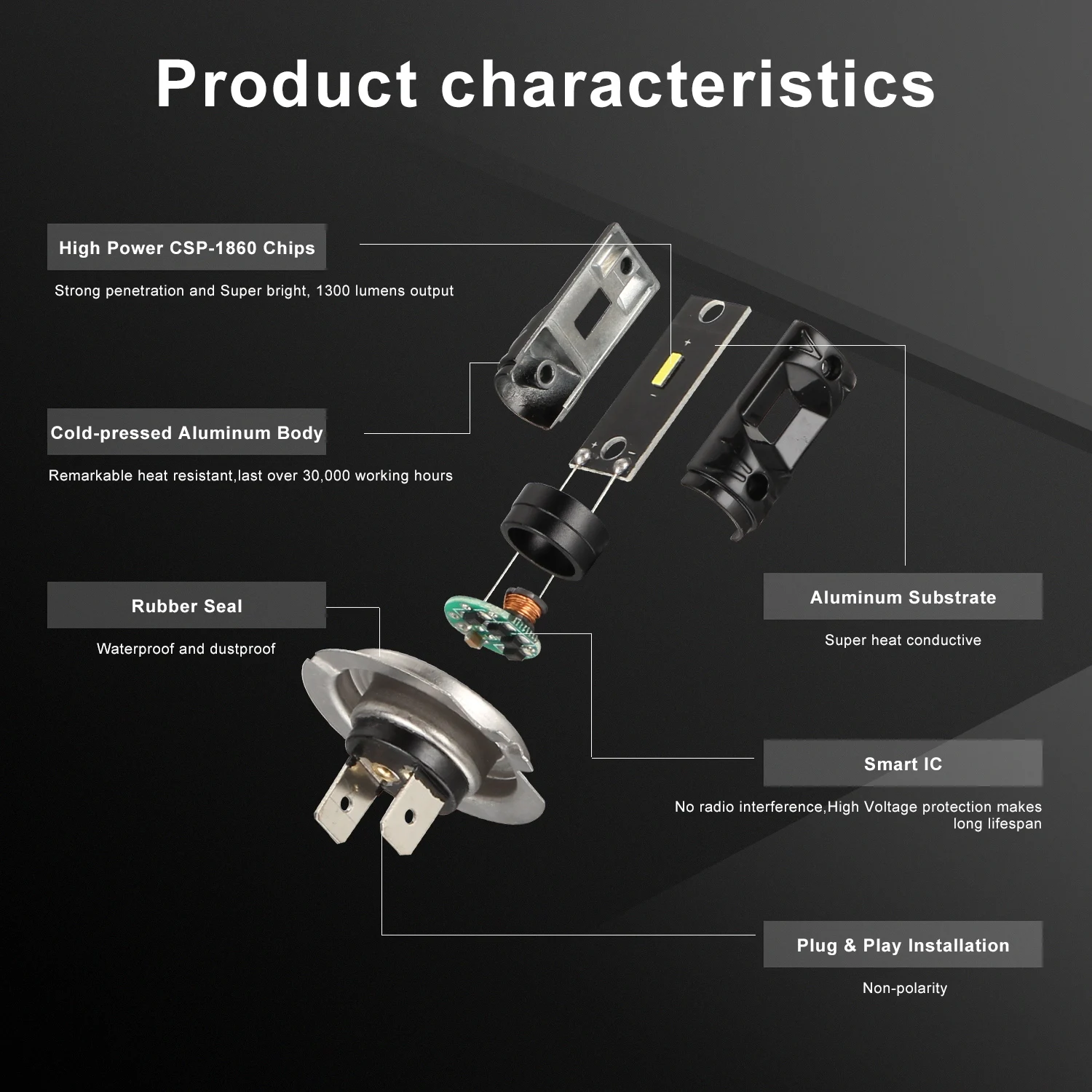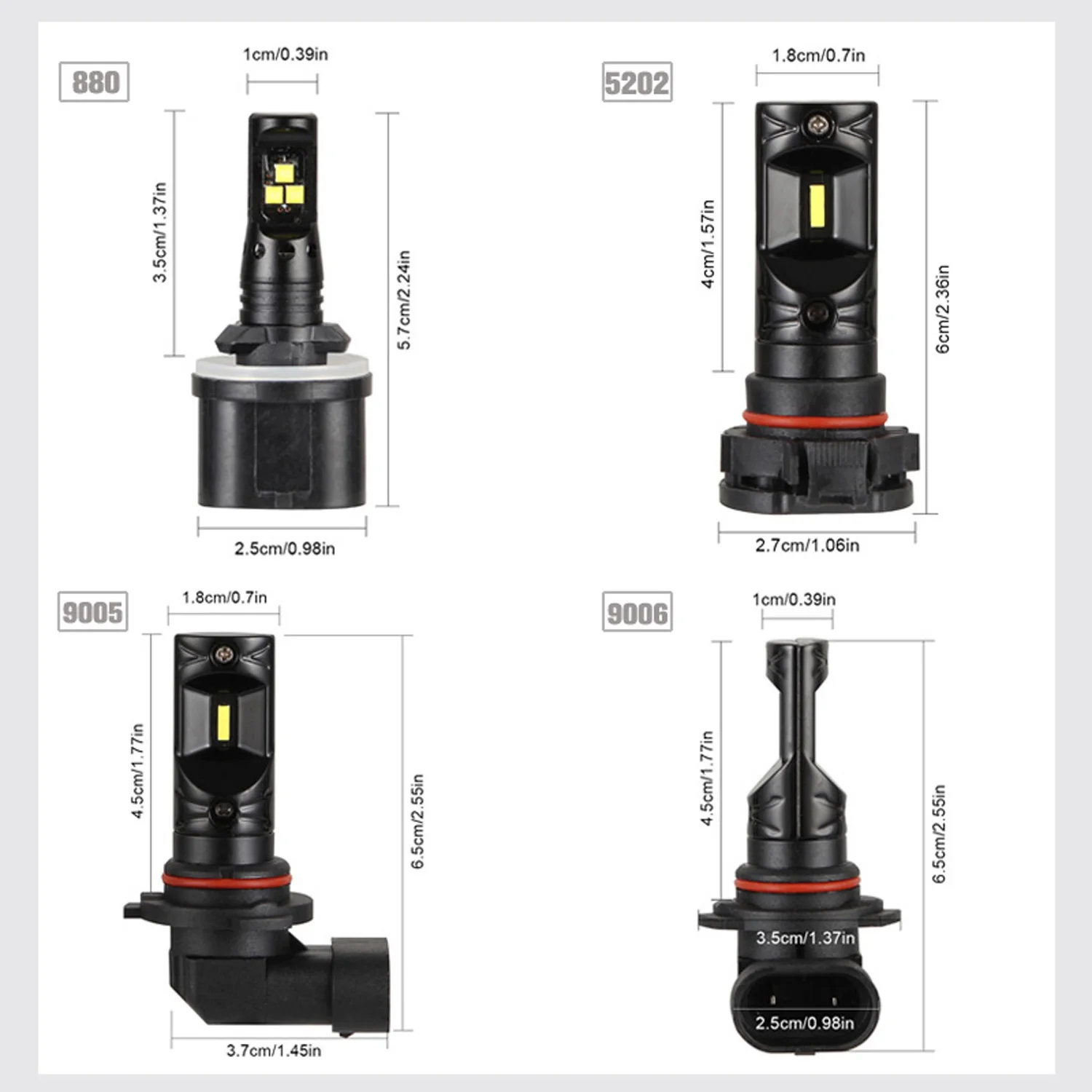 Основание Тип: H7 /H1/ H4 / H8 H9 H11/880/881/5202/9005 HB3 /9006 HB4 Тип светодиодный: высокомощный чип CSP 1860 Светодиодный Цвет: белый Светодиодный чип на плате) Срок службы:> 50000 часов Операционной Напряжение: 12V-24V Световой поток: 1600LM Размеры: как на картинке Цветовая температура: 6500K Угол луча: 360 градусов Печатная плата: Алюминий подложка Тип: светодиодный светильник для замены