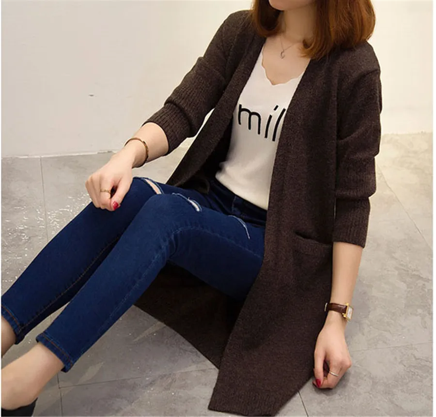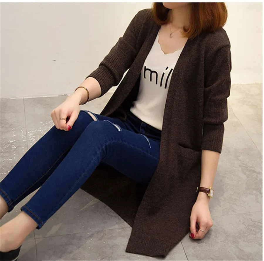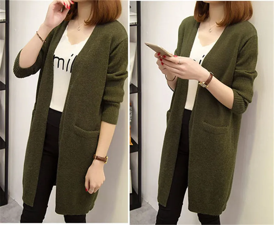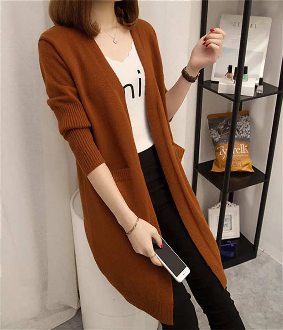 Harajuku girls sweater long Korean 2020 new autumn winter loose knit cardigan all-match thickening Female Sweater jacket