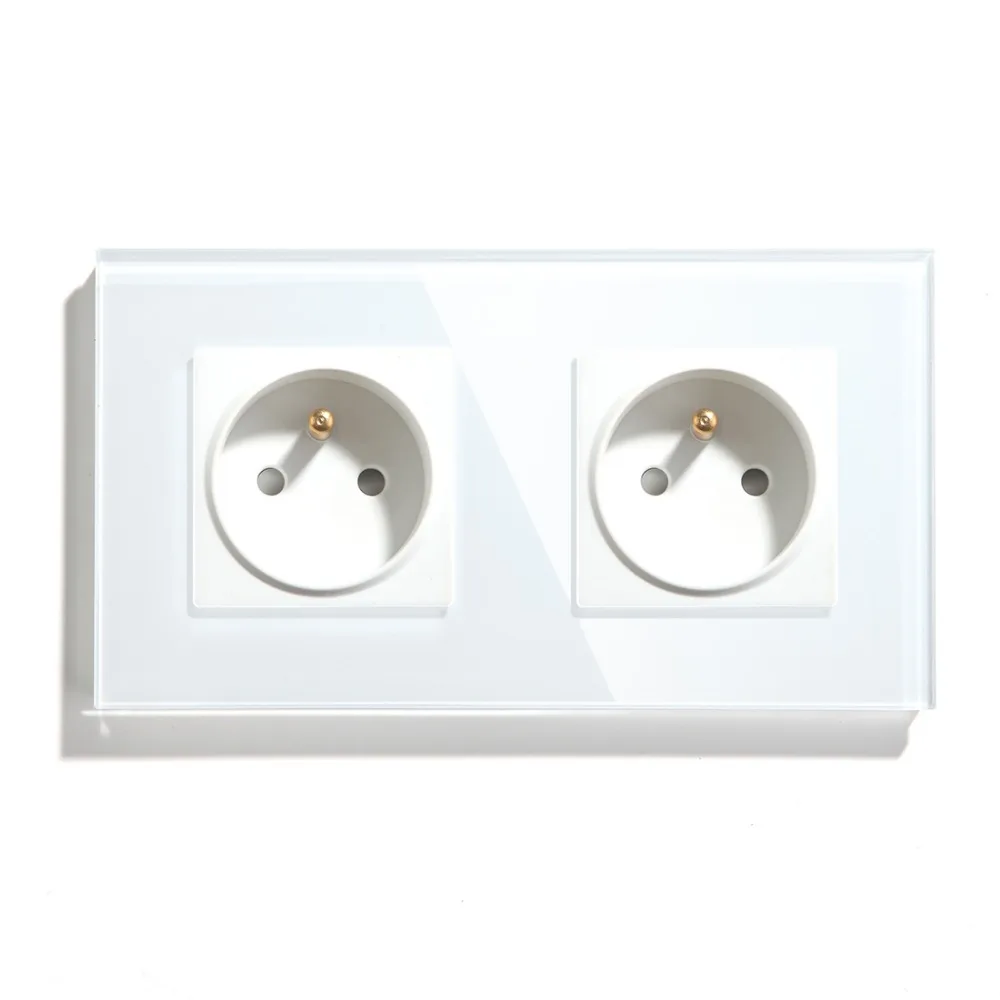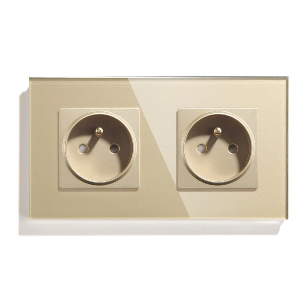 BSEED Frence Польша Стандартный двойная настенная розетка 16A белый цвет черный, золотистый; С украшением в виде кристаллов Стекло Панель 157 мм 110V-250V электрическая розетка