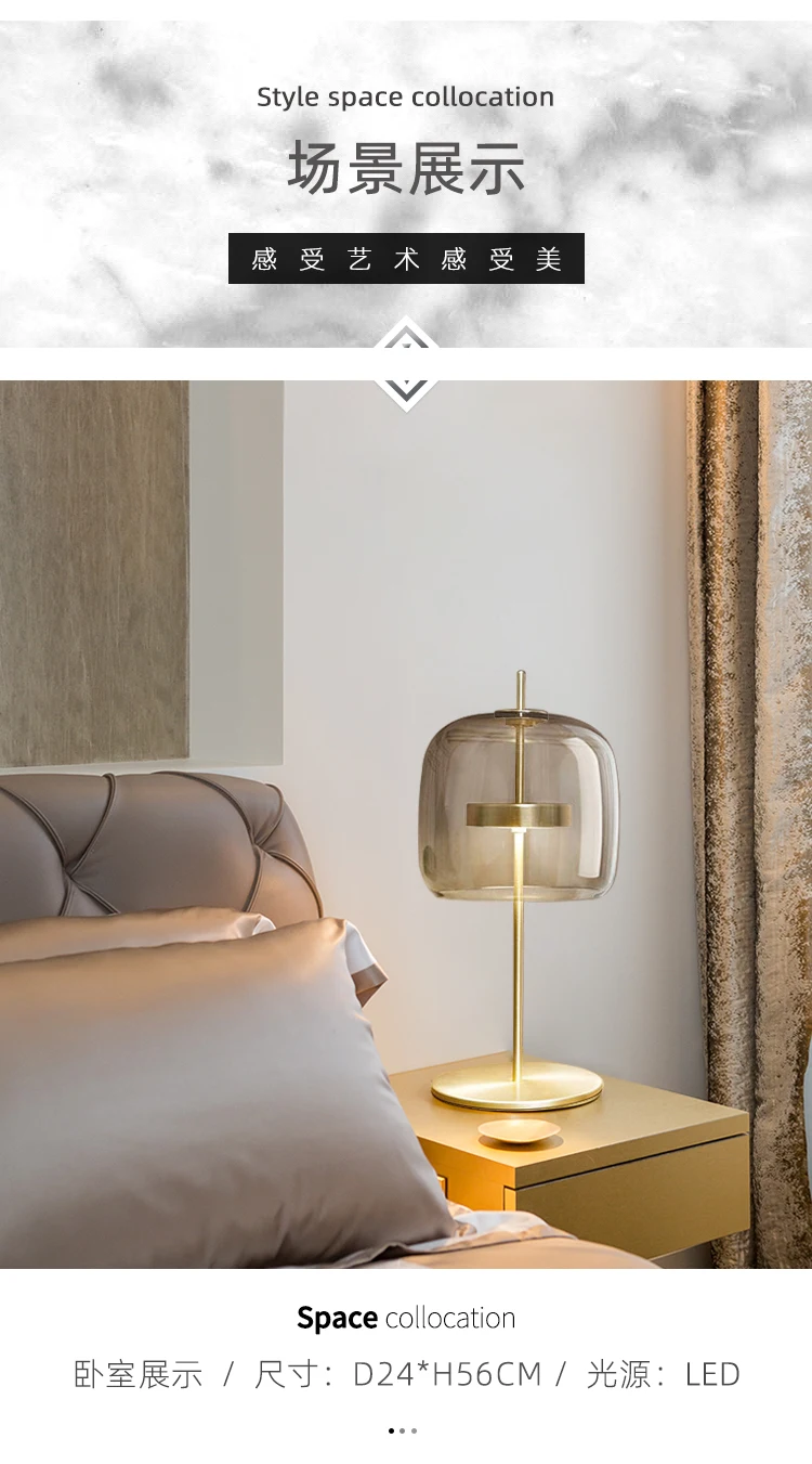 Nordic простой светодиодный настольная лампа Материал: фурнитура + стекло Светильник источник света: светодиодный чип в том числе лампы Размеры: одна осветительная головка-Диаметр 24 см х высота 56 см Напряжение: от 90 до 260 в Применение: гостиная, спальня, зал, лобби, прихожая, проход, балкон и т. Д.