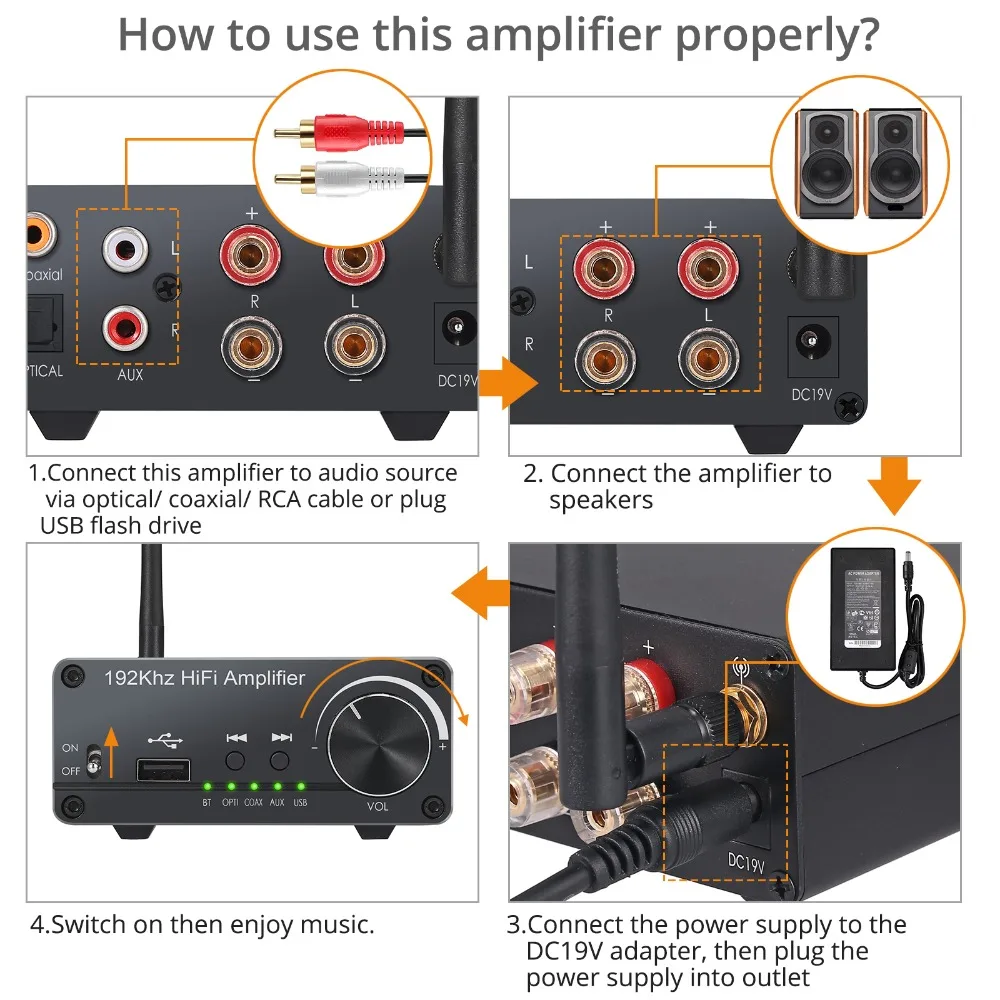 192 кГц/24 бит стерео аудио усилитель Bluetooth 5,0 приемник Hi-Fi цифровой усилитель мощности DAC оптический коаксиальный USB в аналоговый аудио конвертер для домашних динамиков 100 Вт + 100 Вт