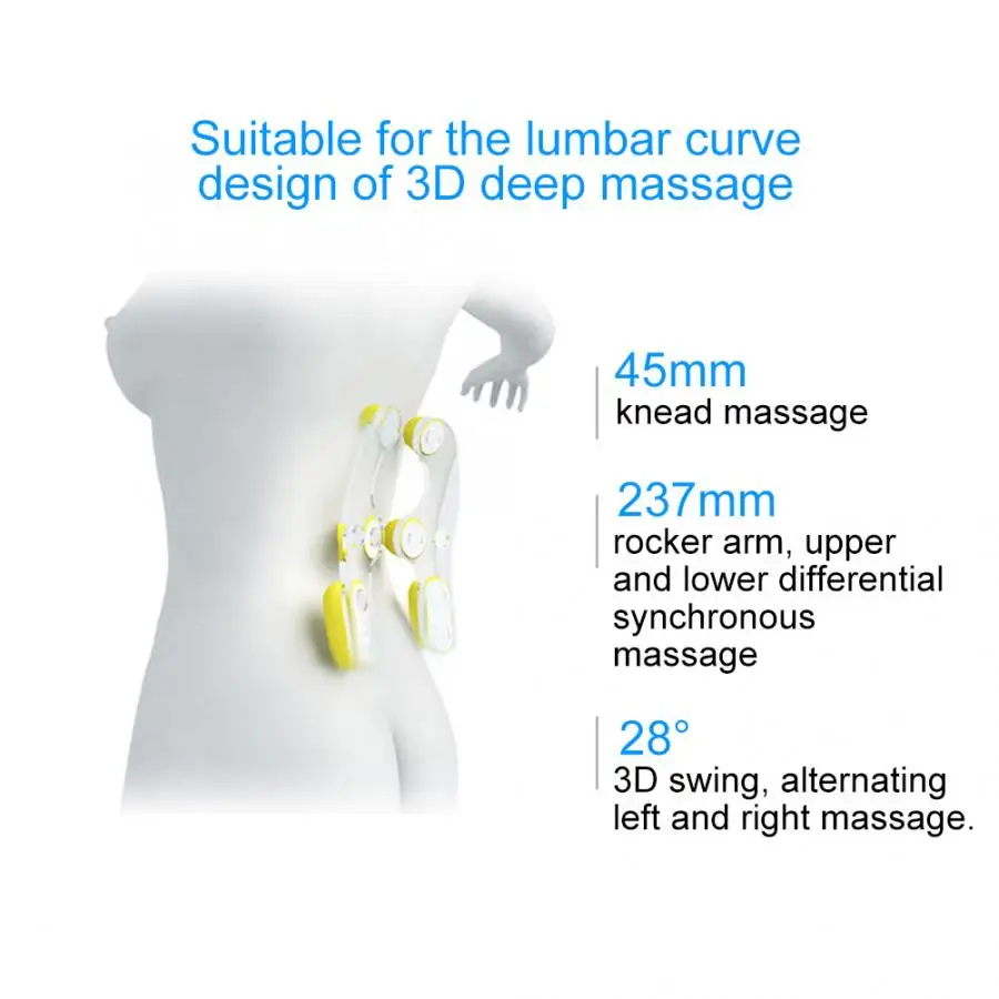 Эта многофункциональная Массажная подушка для тела может эффективно облегчить вашуУсталость, особенно для шеи и спины. С функцией нагрева, обеспечиваютТепло растягивается и ослабляет сухожилия. Интеллектуальное управление, легкоРаботает, старики и дети могут легко использовать. Низкий уровень шума, дайте вамТихий время массажа.