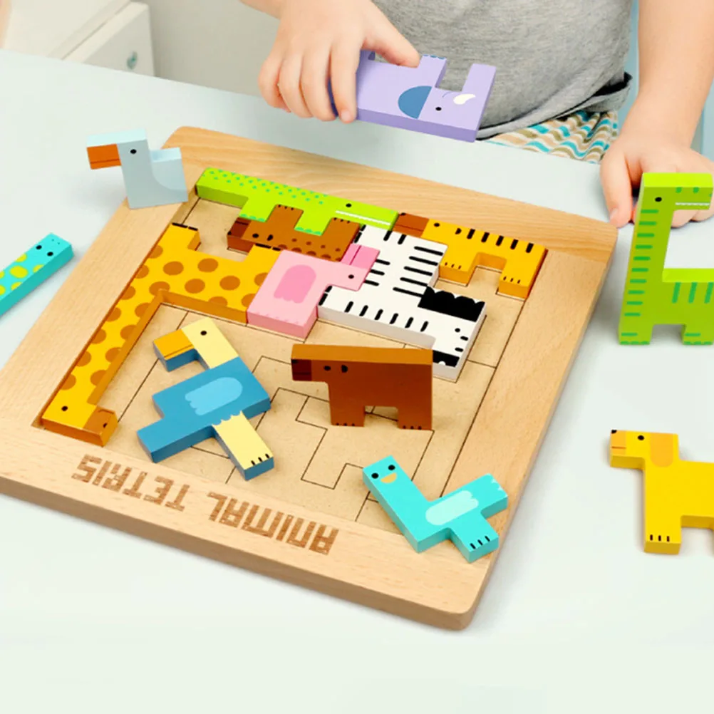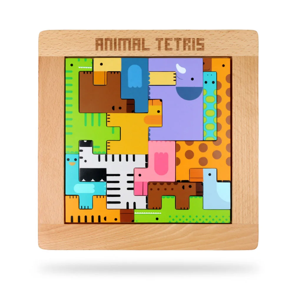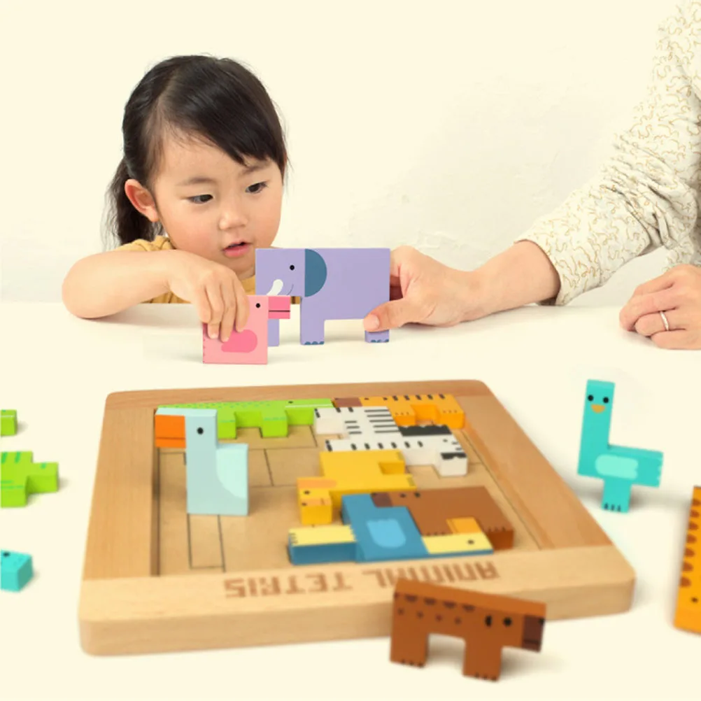 1 Набор деревянный животные пазл строительные блоки игрушка