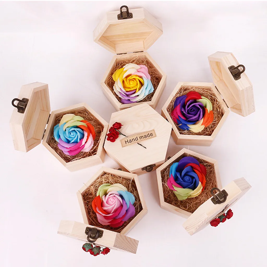 Шестигранная деревянная коробка мыло цветок Моделирование красочная Роза маленькая деревянная коробка