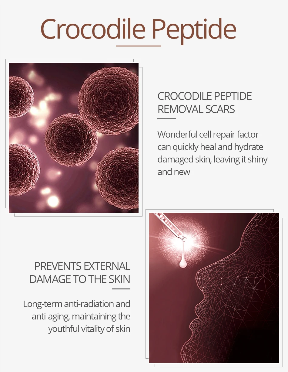Крокодиловый пептид, крокодиловый пептид, удаление шрамов, замечательный фактор восстановления клеток, может быстро заживить и увлажнить поврежденную кожу, оставляя его блестящим и новым предотвращает внешнее повреждение кожи долгосрочное антирадиационное и антивозрастное сохранение молодой жизненной силы кожи