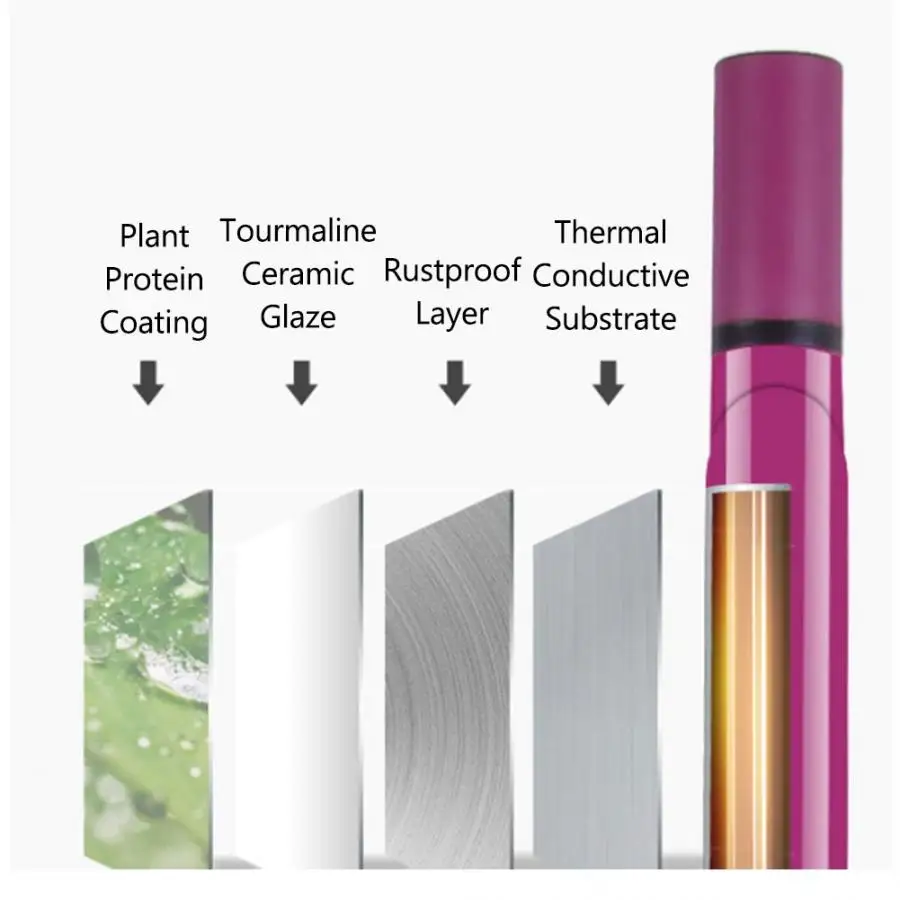 2. Алюминиевая трубка с керамической глазурью, более равномерное нагревание, уменьшает повреждение качества волос.