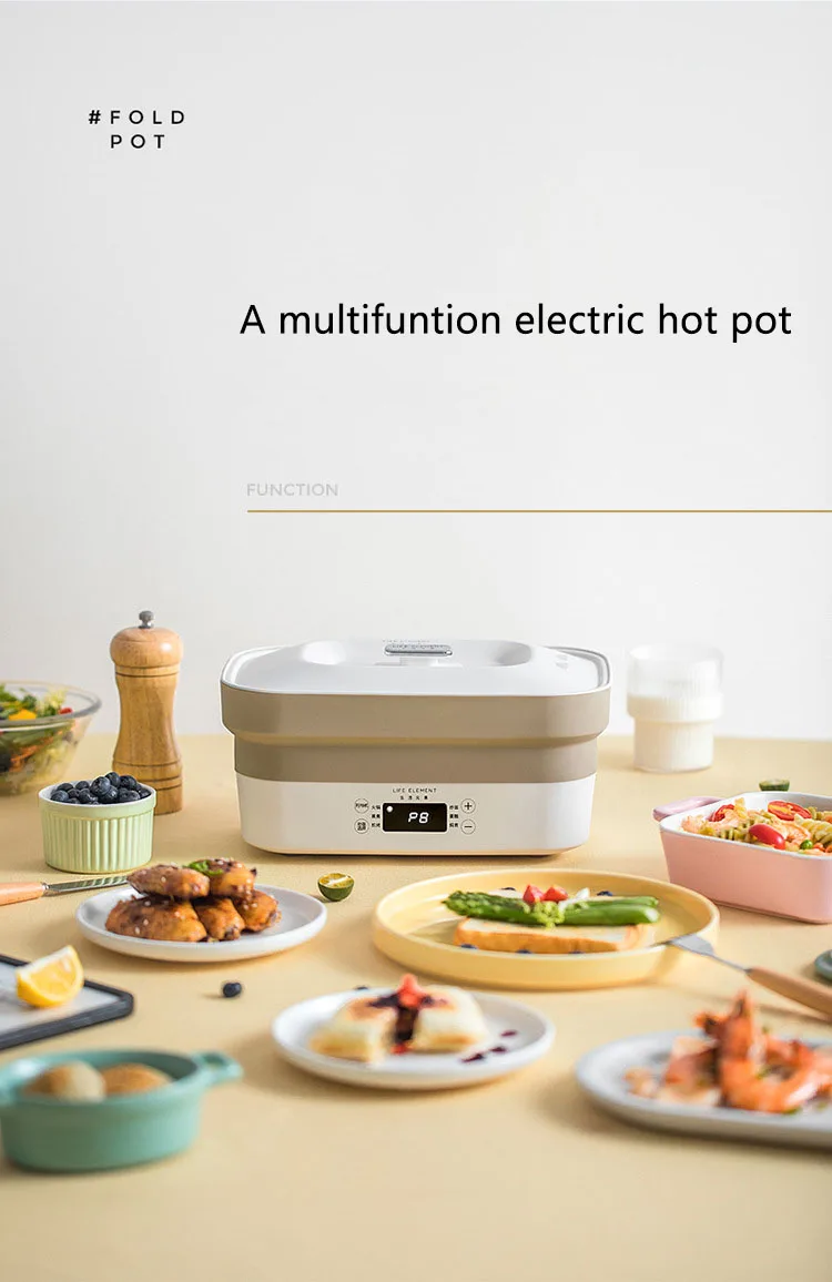 1. Многофункциональная кухонная утварь, жарка, горячий горшок, тушеное мясо, пар, жарка, готовка все в одном 2. Складной, сжатый объем, легко носить с собой 3. Напряжение: 110-220 В 4. Литое Алюминиевое антипригарное дно 5. One-touch smart touch
