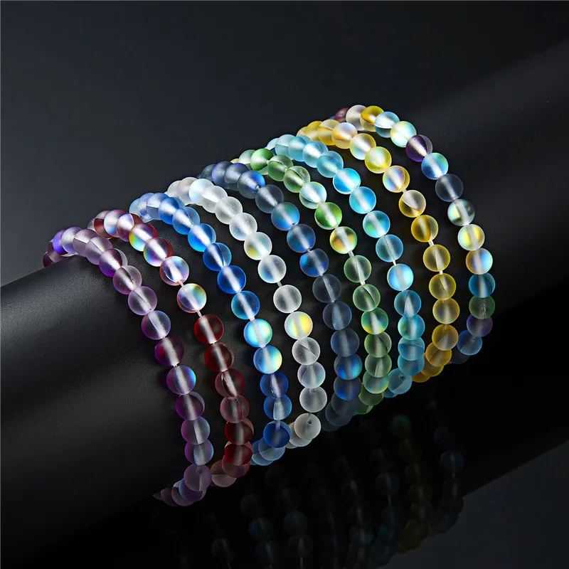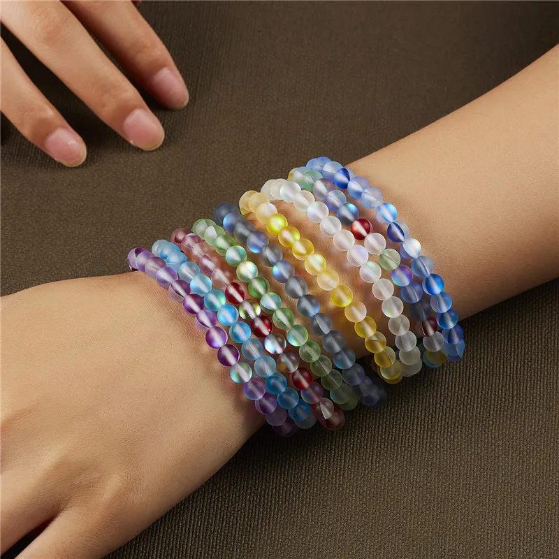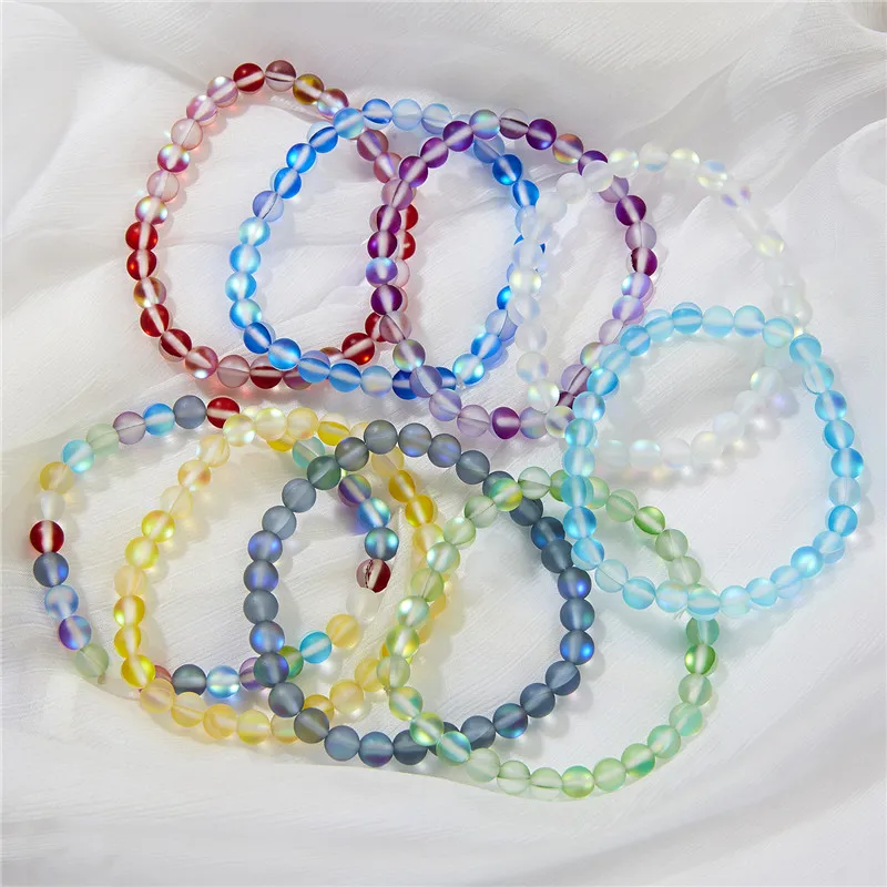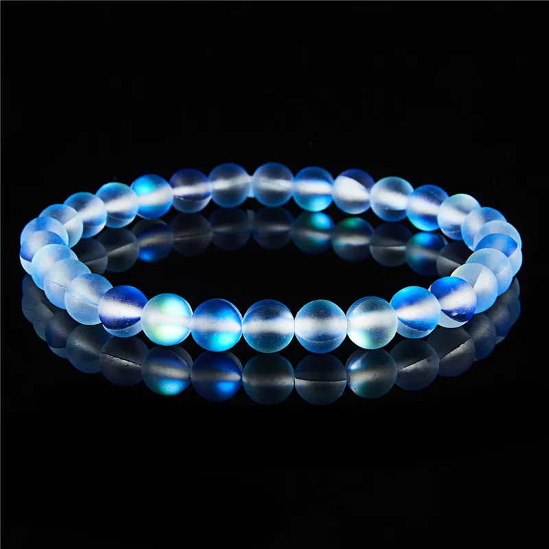 Ручной работы лунный камень браслет на эластичной веревке с натуральным кристаллом 6 мм бусины персонализированные браслеты для женщин Регулируемый