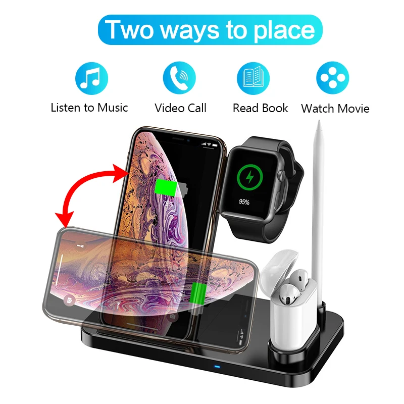 4 в 1 Беспроводное зарядное устройство для Iphone 11 Pro портативное зарядное устройство док-станция для Apple Watch 4 3 2 1 для Airpods для Apple Pencil Беспроводная зарядка подставка для телефона