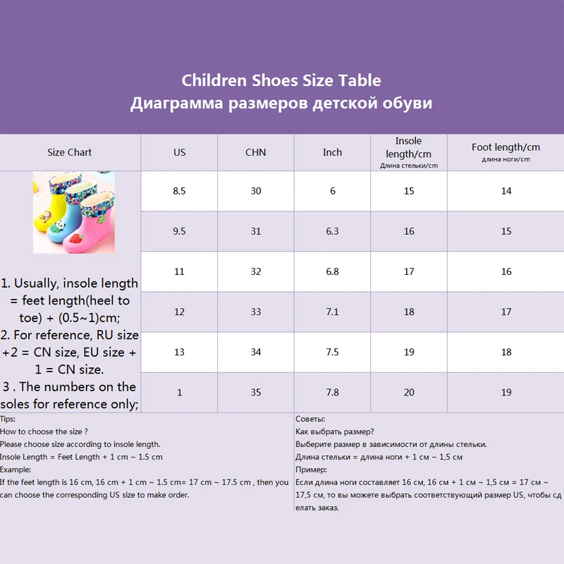 Примечание: при выборе размера, пожалуйста, проверьте нашу таблицу размеров, потому что Таблица размеров не является стандартной. Поэтому, пожалуйста, выберите размер в соответствии с «длиной стопы». Найдите необходимую длину стопы, а затем найдите соответствующий размер США или CHN для оформления заказа.