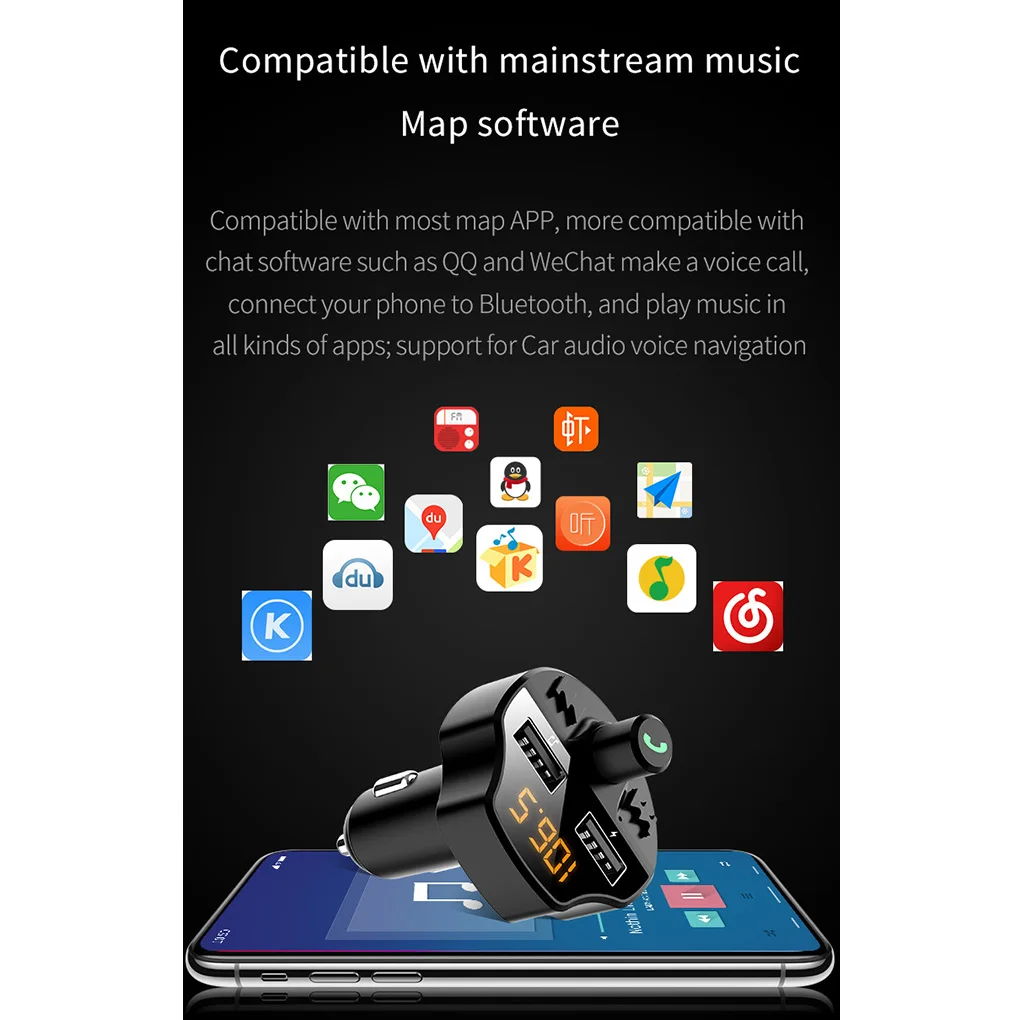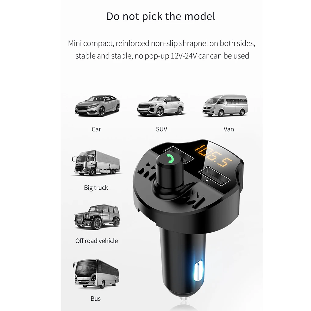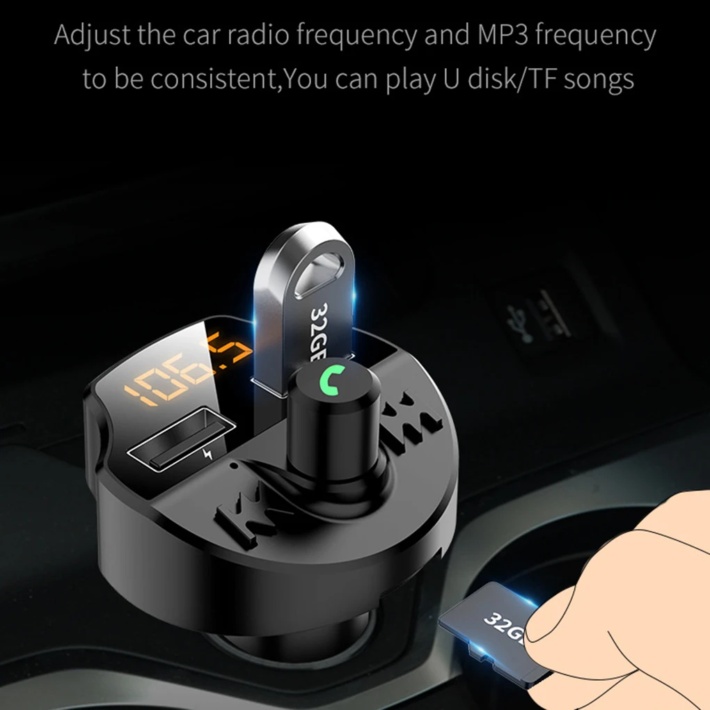 Автомобильный комплект громкой связи Bluetooth 5,0 беспроводной fm-передатчик напряжение батареи ЖК-дисплей авто MP3 плеер USB зарядное устройство