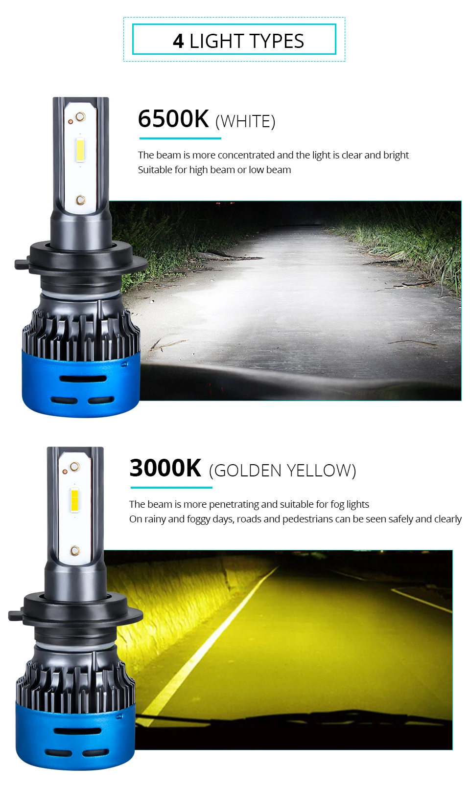 Одиночный луч: H4, HS1,H7, H1,H11 Двойной луч: H4/HB2/9003, hi/lo луч Световой поток: макс. 10лм, нормальный 8620лм Входная мощность: 40 Вт/пара (22 Вт/лампа) Мощность Светодиодный: 20 Вт/лампа, 40 Вт/пара Мощность: 9-36 В постоянного тока Только для plug and play Угол луча: 360 ° Светильник источник: в соответствии с пожеланиями заказчика высокое Мощность 1860 светодиодов с высоким Яркость Встроенный Турбовентилятор для охлаждения IP67 класс из водонепроницаемого материала Супер рассеивания тепла Светильник не задерживается Супер длительный срок службы 50000 часов светодиодный чипы Варианты цвета: 6500K белый, 3000K Подходит для большинства автомобилей, грузовиков, мотоциклов, моторов, квадроциклов, внедорожников, лодок и большинства транспортных средств