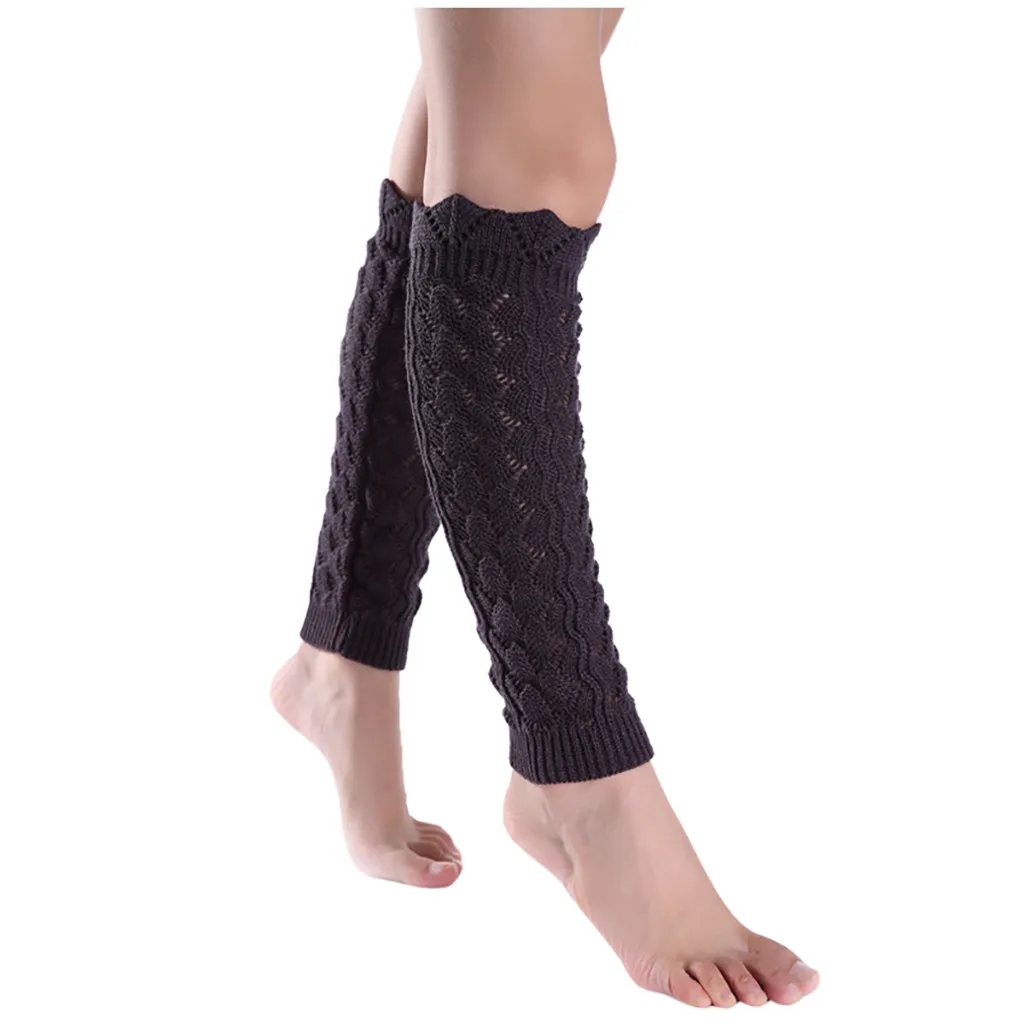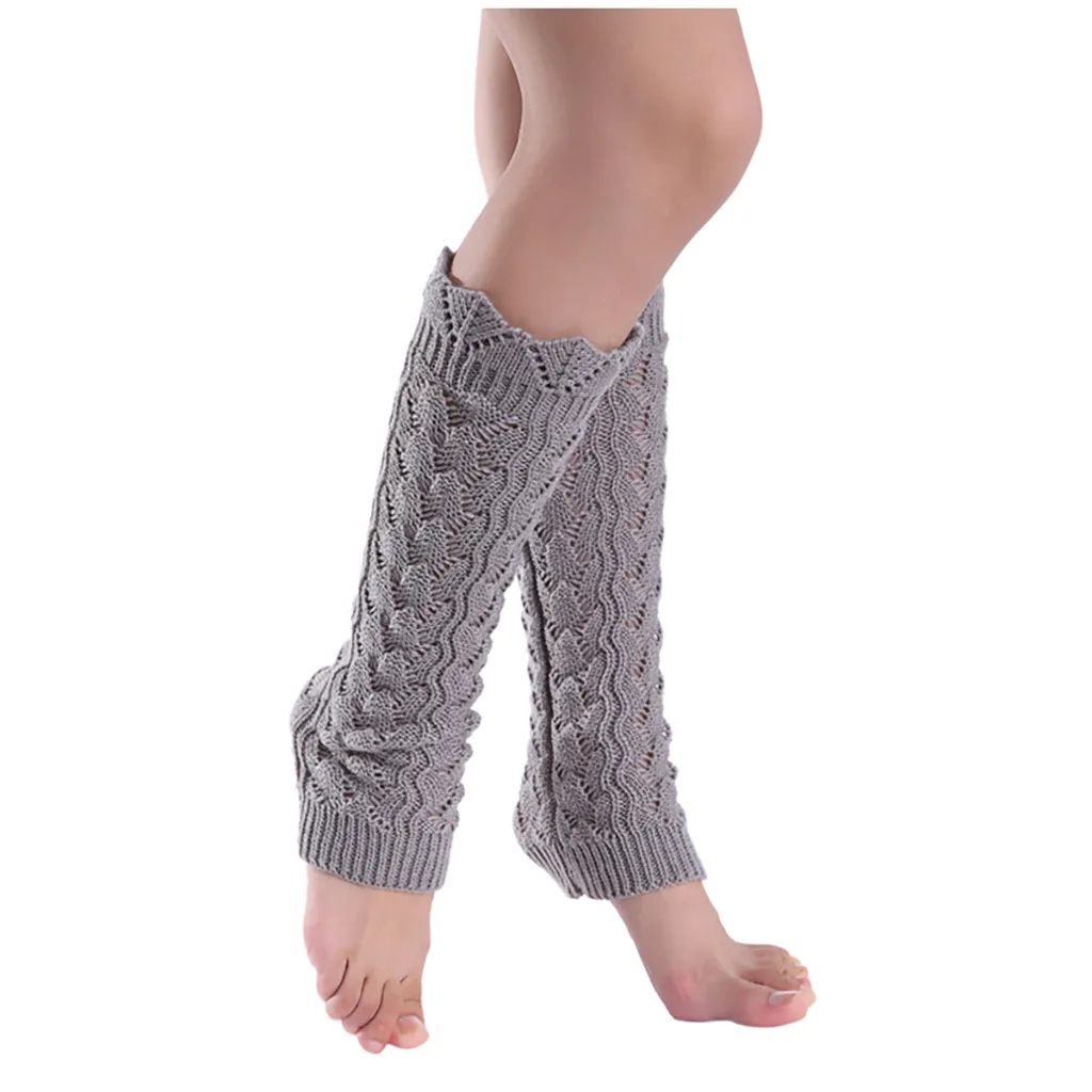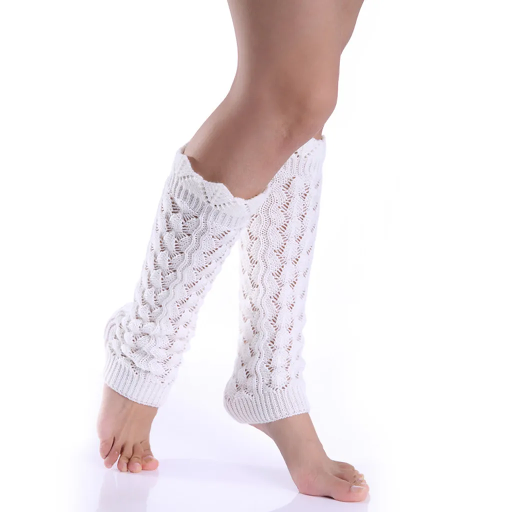 Women Pure Color Woollen Long Hollow-Out Leg Warping Knitted Boot Cover Socks
