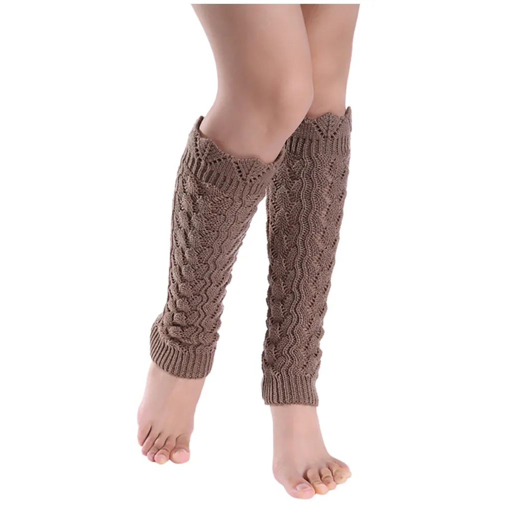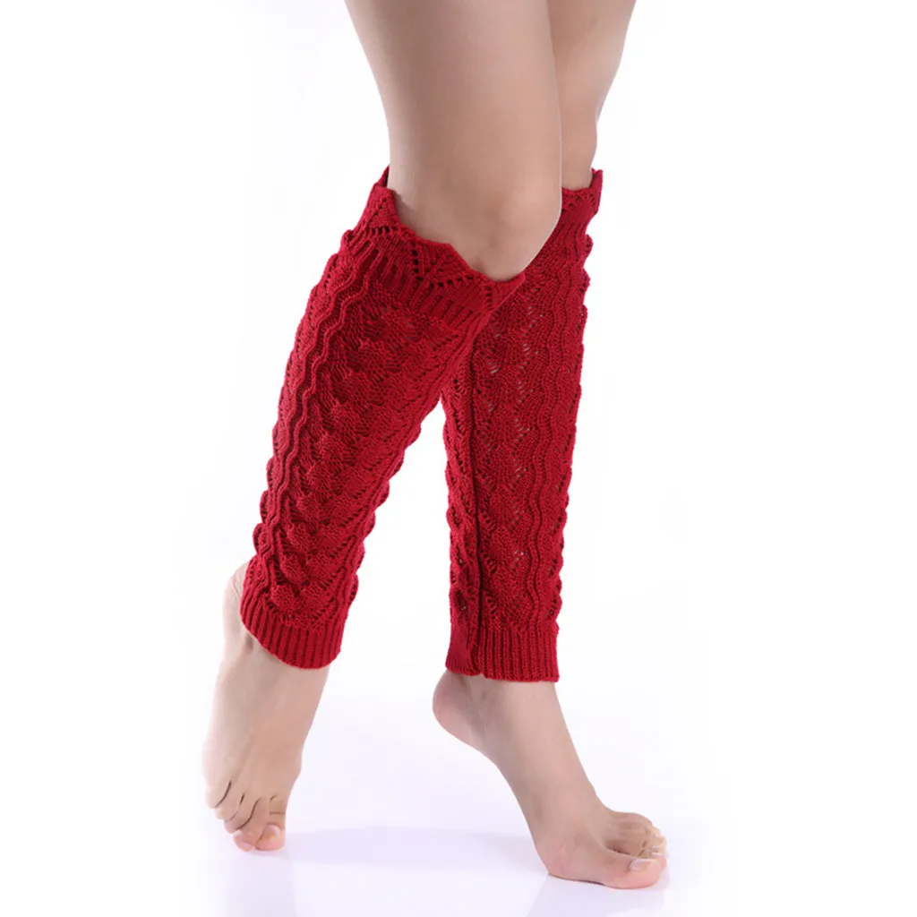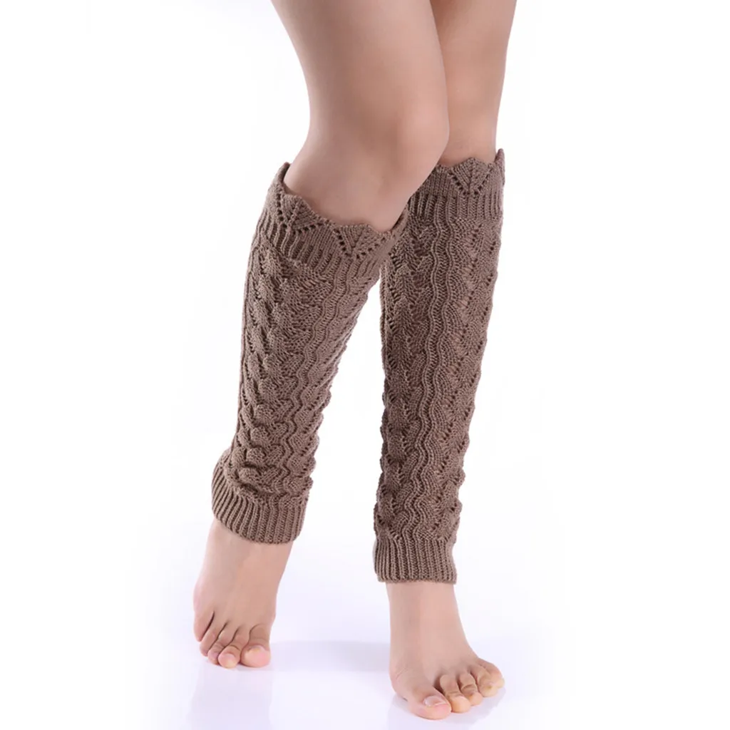 Women Pure Color Woollen Long Hollow-Out Leg Warping Knitted Boot Cover Socks