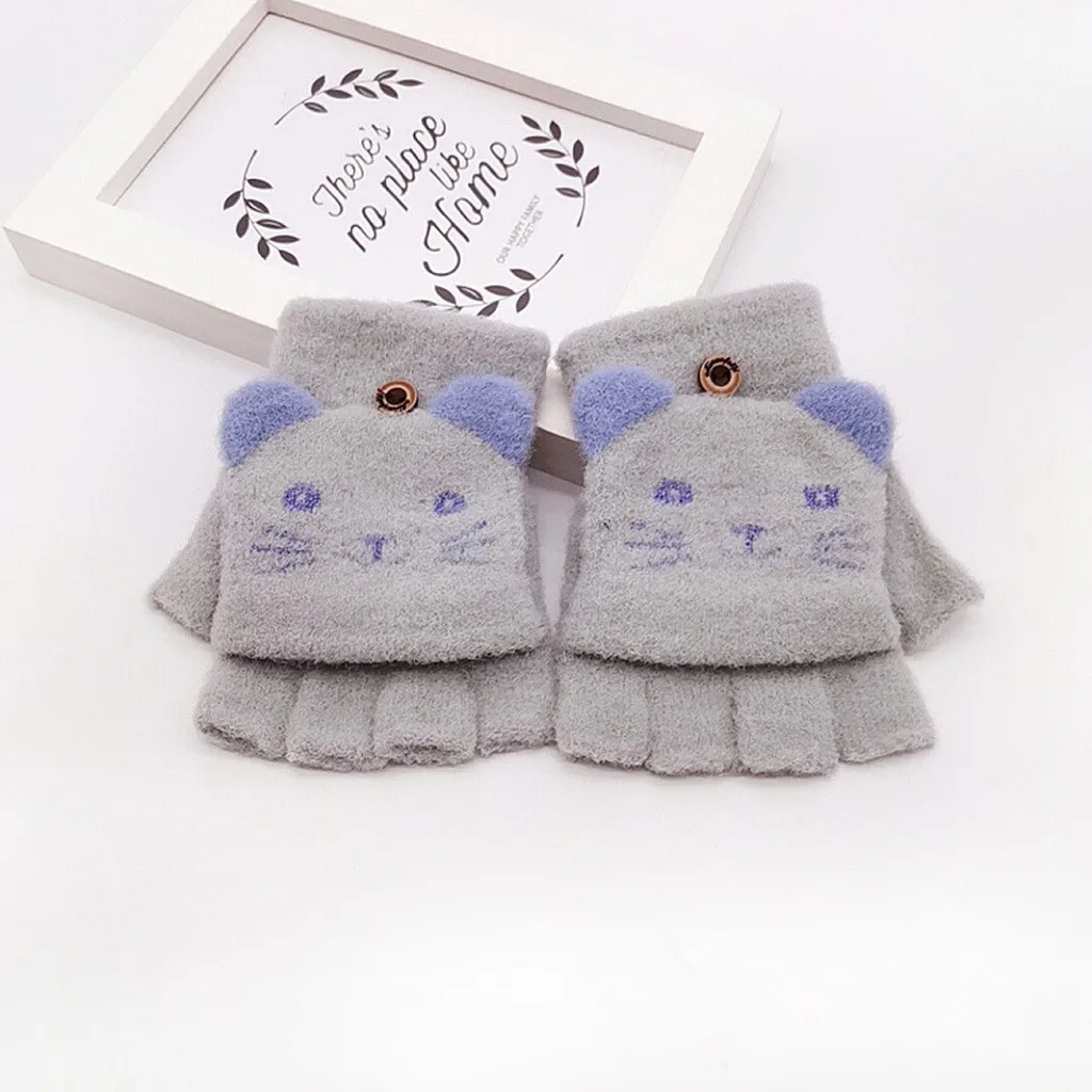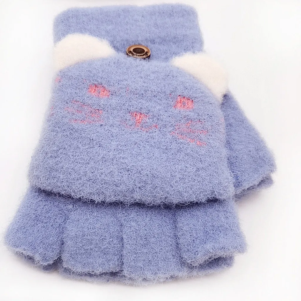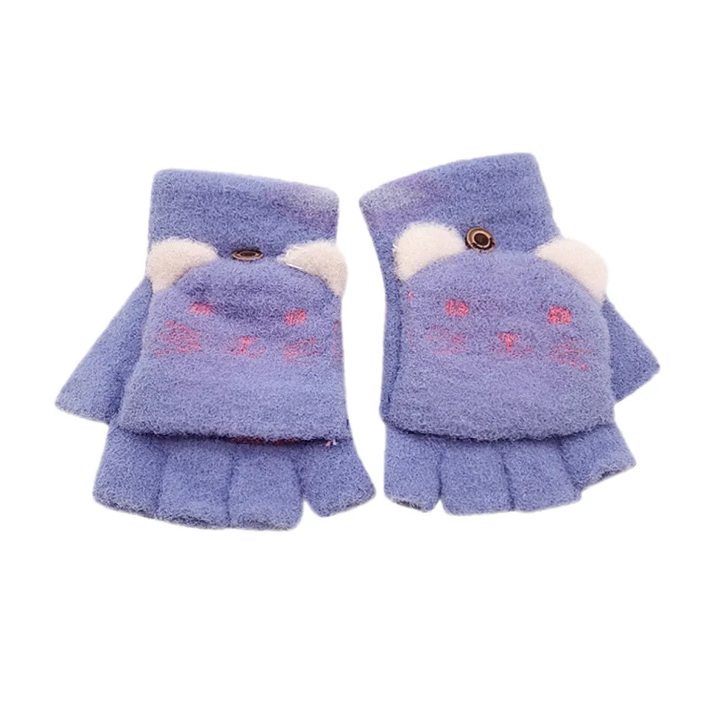 Детские теплые перчатки для мальчиков и девочек, зимние цветные теплые вязаные перчатки с рисунком кота из мультфильма, милые вязаные детские перчатки на осень и зиму