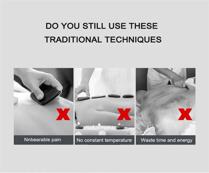 1. Этап подготовки: А. Приготовьтесь к использованию эфирных масел, бумажных полотенец и других предметов и дезинфицируйте зонд спиртом или солевым раствором. B. Подключите источник питания прибора и различные аксессуары. На панели отображается статус светильник. После того, как проверка верна, она входит в рабочее состояние. 2. Этап эксплуатации: оператор снимает рубашку и кладет ее на кровать, готов к работе. 3. Нанесите соответствующее количество эфирного масла на заднюю часть оператора. Используйте обе руки, чтобы массировать назад и вперед на спине эфирным маслом. Откройте заднюю часть эфирного масла оператора в течение 5-10 минут. 4. Нажмите кнопку зонда отрицательного давления, чтобы активировать датчик отрицательного давления. Регулятор отрицательного давления регулируется до минимального значения и температура одна. 5. Операции по соскабливанию или обрезанию выполняются на месте эксплуатации, а температура и отрицательное давление регулируются в соответствии с несущей способностью. 6. В конце операции по обрезанию или соскабливанию вытрите лишнее эфирное масло бумажным полотенцем и начните Вибрационный Массажный зонд для расслабления и восстановления. 7. Когда операция завершена, протрите зонд прибора и отключите питание. Поместите инструмент в сухое место.