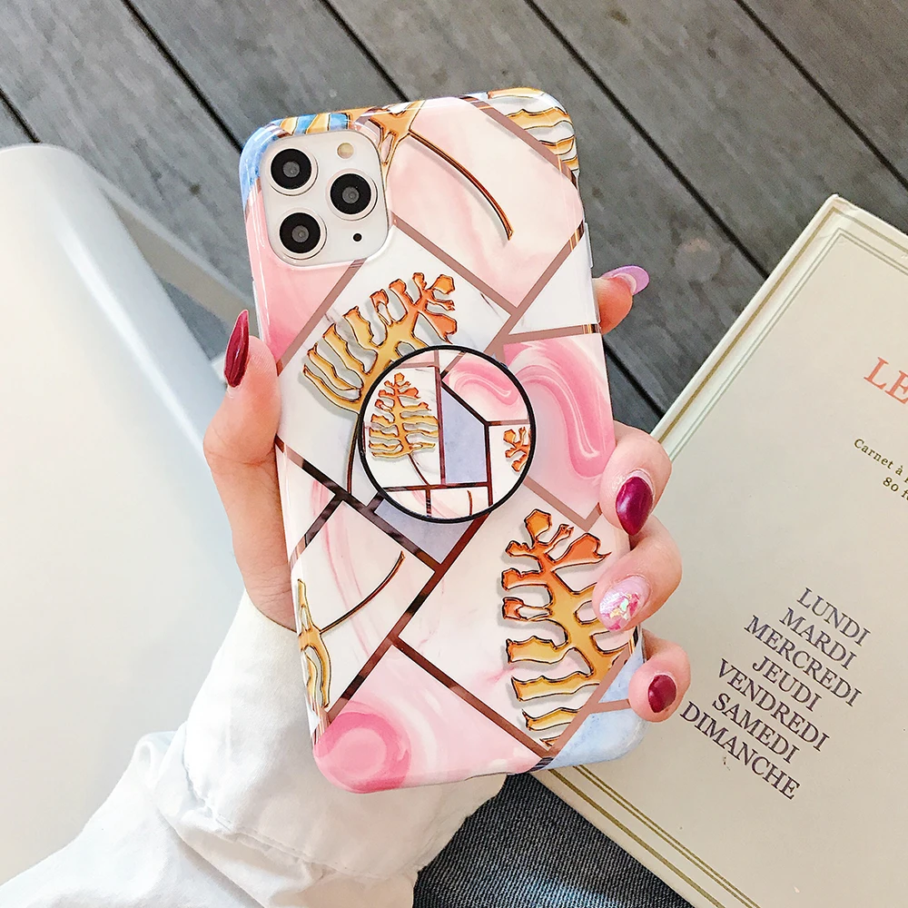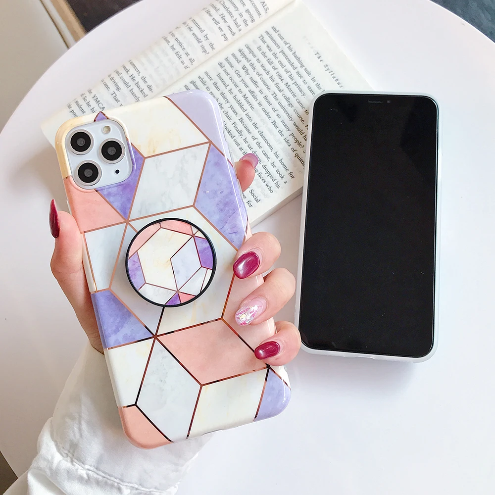 Чехол для Xiaomi Redmi Note 7 Pro с геометрическим рисунком и мраморным покрытием защитный