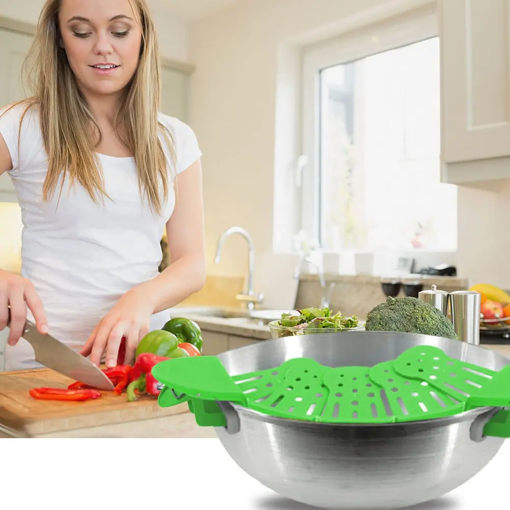 Кухня Gizmo оснастка N Натяжной фильтр клип на силиконовый дуршлаг подходит для всех кастрюль и миски рисовые пасты Овощной промывки дуршлаг