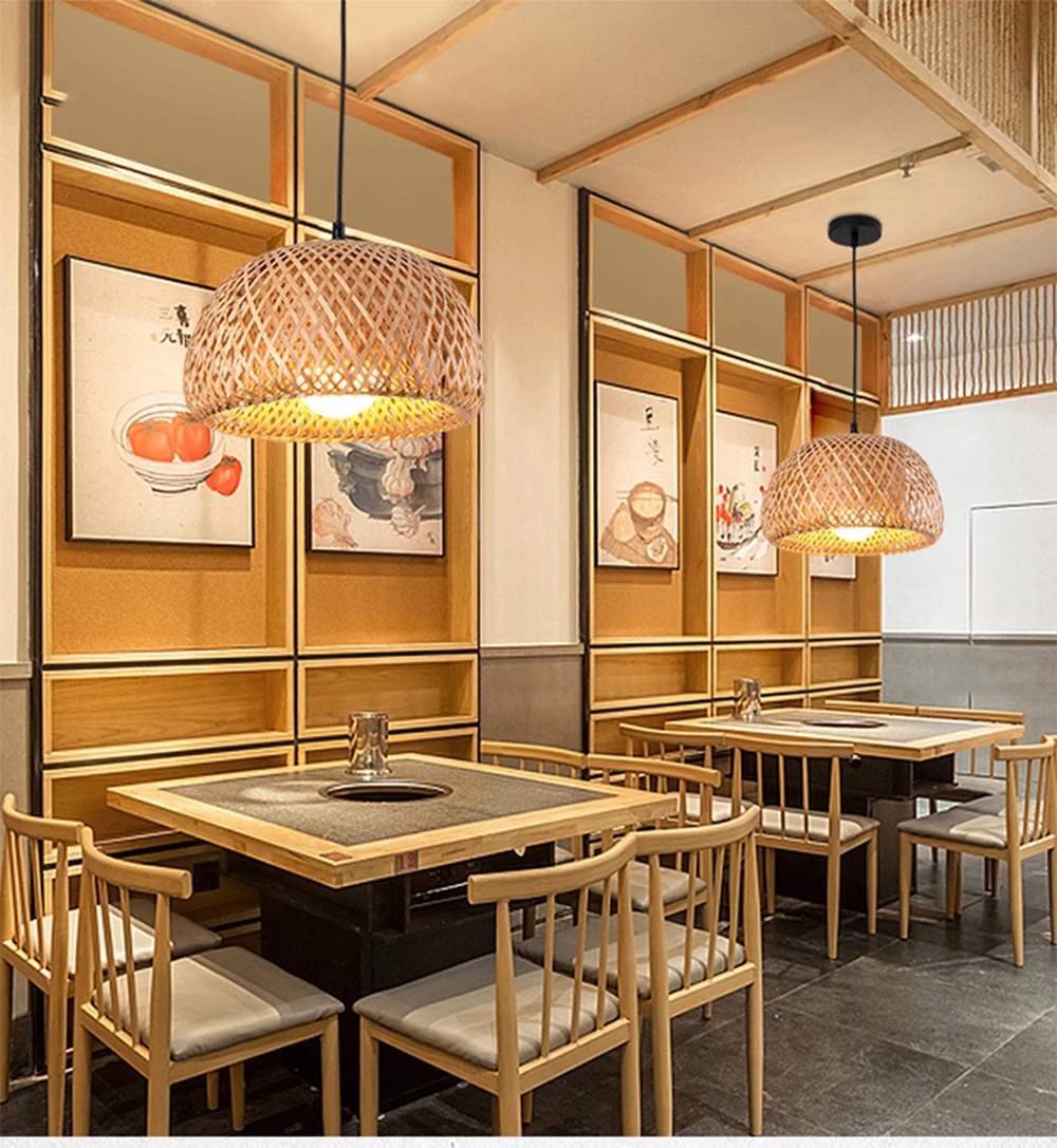 Китайский подвесной светильник ручной работы, бамбуковое гнездо, антикварные лампы E27, фонари для чайного домика, гостиной, отеля, ресторана, прохода