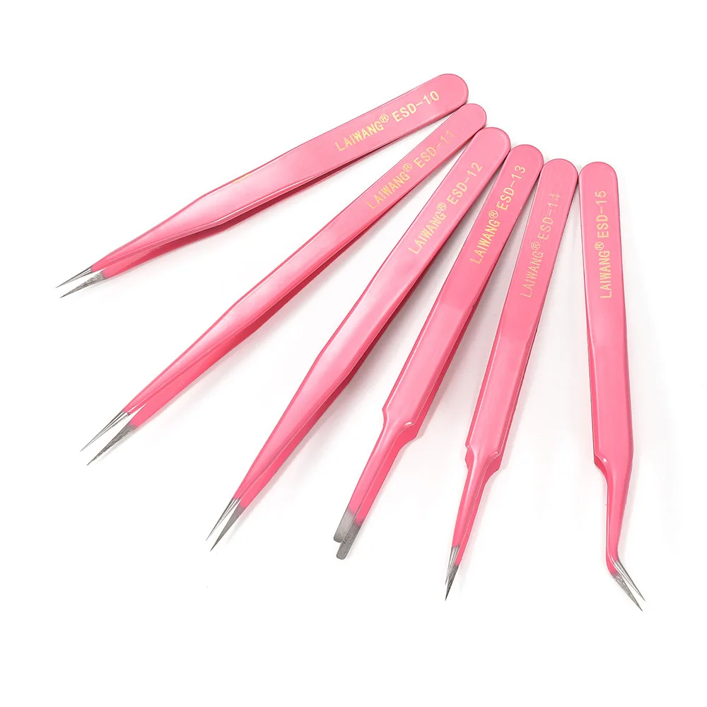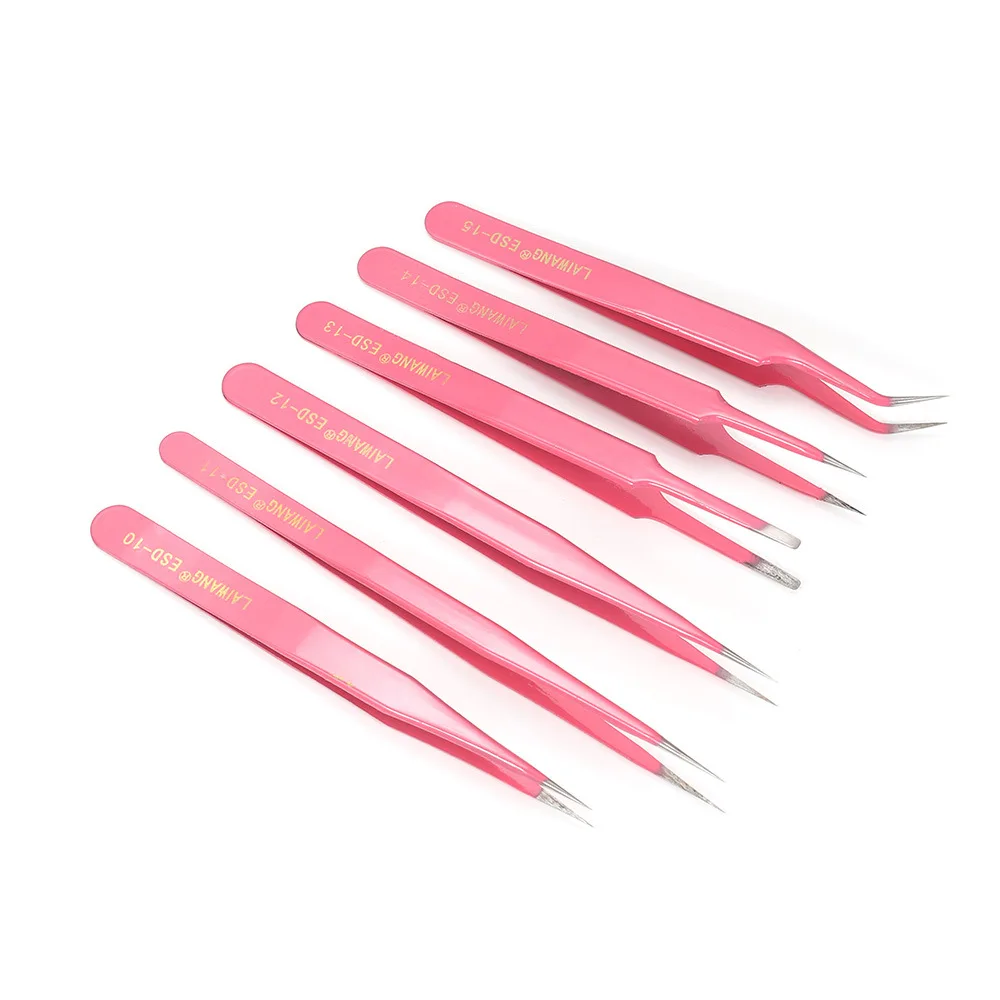 Антистатическая Нержавеющая Сталь Розовый точный Пинцет индивидуально упакован