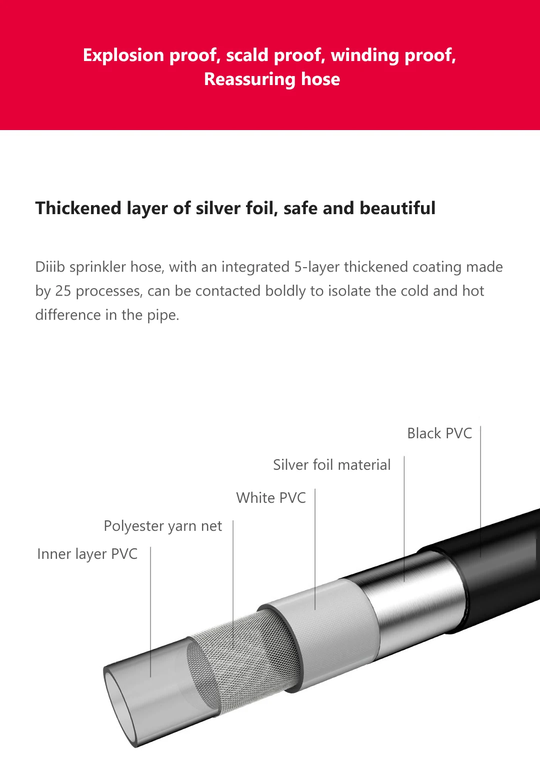 Утолщенный слой серебряной фольги, безопасный и красивый. Dilib шланг поливочный, с интегрированным шагомером 5-ти слойной утолщенные покрытие сделано 25 ocesses не могут быть применены, смело для изоляции холодной и горячей разницы в трубе.