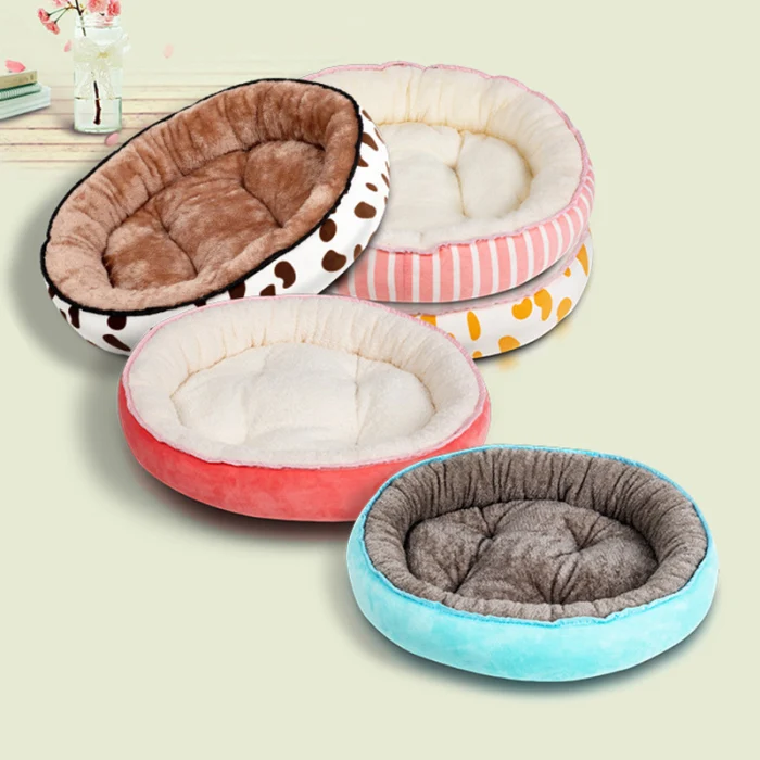 Круглые плюшевые кровати для домашних животных Двусторонняя Удобная толстая мягкая теплая подушка для собак и кошек коврик для сна FAS6