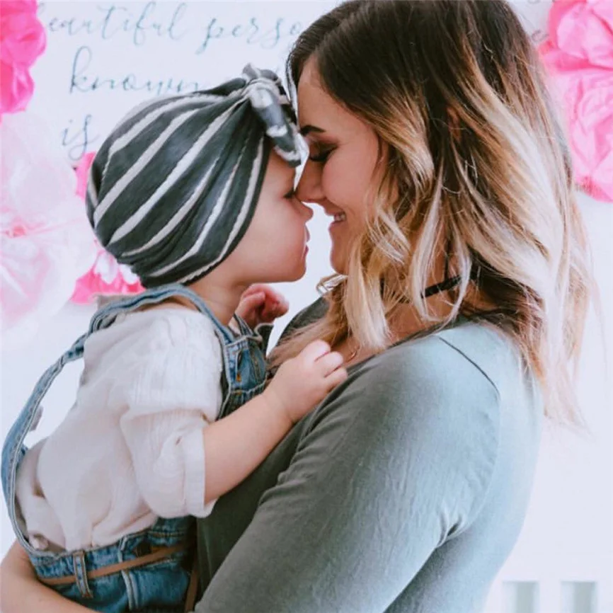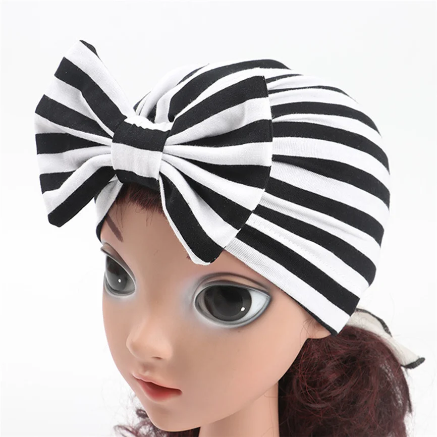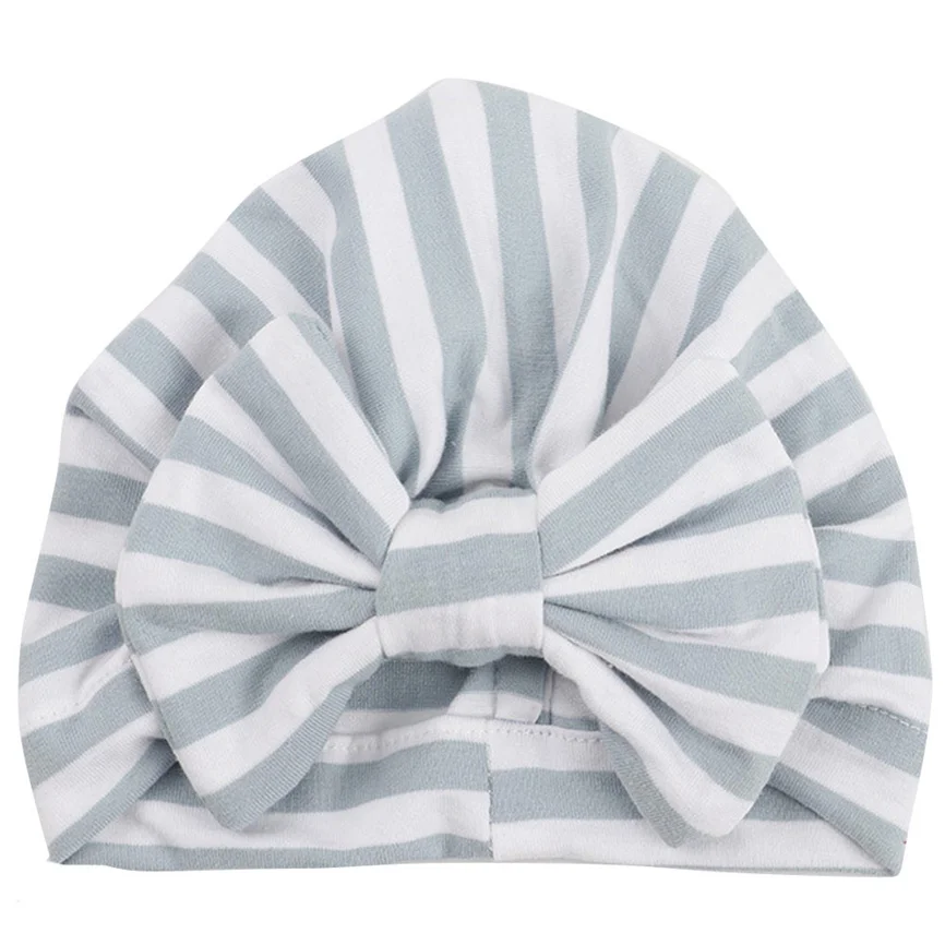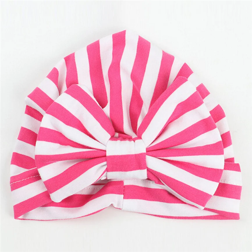 Состав материала ()Милая мягкая шапка в полоску с бантом для маленьких мальчиков и девочек