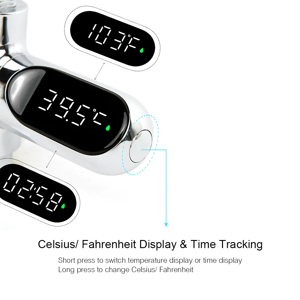 Используя передовые технологии, термометр для водяной ванны предназначен для заботы о вашем ребенке, как потребности ребенка. С революционным светодиодный цифровым дисплеем, Этот соединитель шланга для душа позволяет четко и точно контролировать температуру воды на основе высокоточного температурного датчика. Больше не беспокойтесь о горячих или холодных душах, вы можете легко получить лучшую температуру воды.