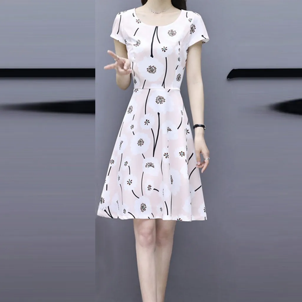Женское модное летнее платье до колена с круглым вырезом и коротким рукавом с принтом