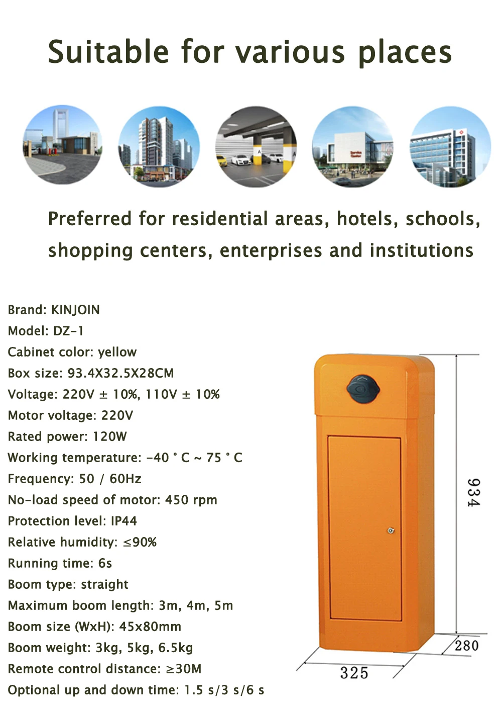1. Скорость бега может регулироваться от 1.5s до 8 с 2. Может быть быстро изменен 3. Откройте ворота барьера колесом двигателя при выключении питания, автоматически сбросить после включения питания 4. Изогнутая рукоятка с тремя звеньями, стабильная работа. 5. Беспроводной пульт дистанционного управления открыть/закрыть 6. Функция автоматического обратного хода (Регулировка силы) 7. Инфракрасный фотоэлемент разъем доступен 8. Разъем детектора петли доступен. 9. Хорошо интегрирован с системой парковки автомобиля оборудования, с проводным управлением (должен быть переключатель сигнала) 10. Разъем для светофора светильник (ac220в, мощность менее 40 Вт) 11. Предложение сухого контактного сигнала для системы парковки автомобиля (COM,NC,NO) 12auto-задержка при закрытии (регулируемая) 13.RS485 или сетевой интерфейс связи (нет необходимости устанавливать модуль) 14. СЧЕТНЫЙ интерфейс 15,24 в интерфейс резервного аккумулятора (можно заряжать с помощью солнечной энергии)