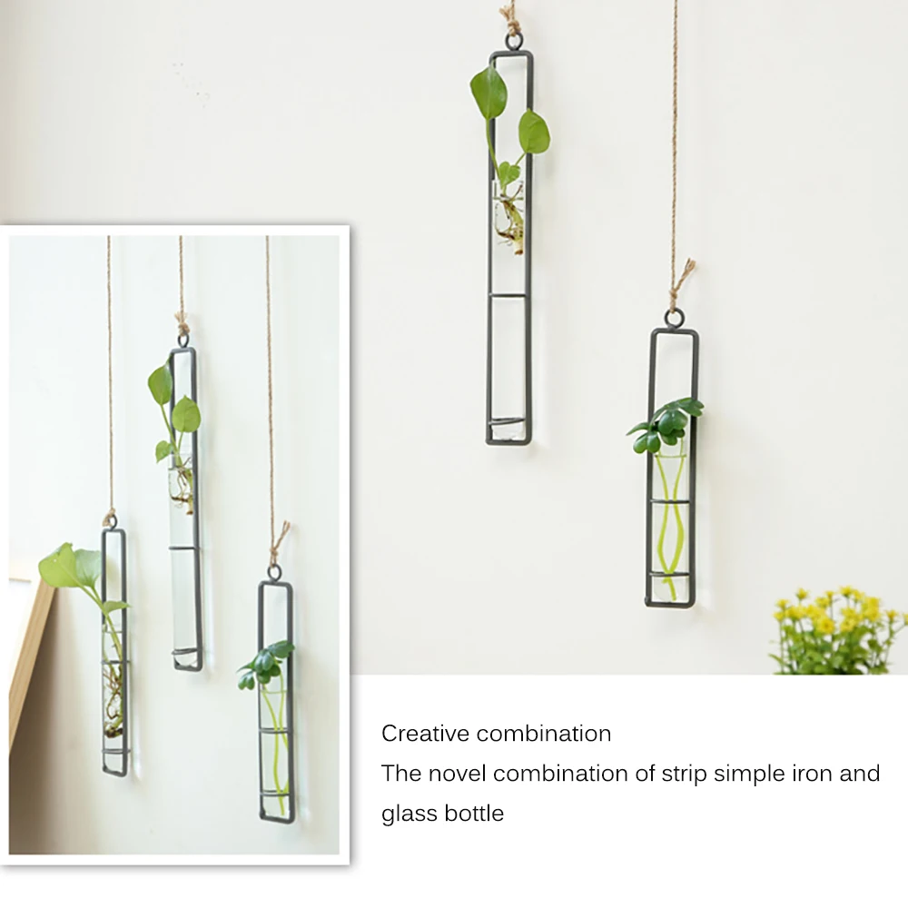 Небольшое отверстие позволяет повесить эту железную стеклянную вазу на любую стену с помощью соответствующего монтажного оборудования.