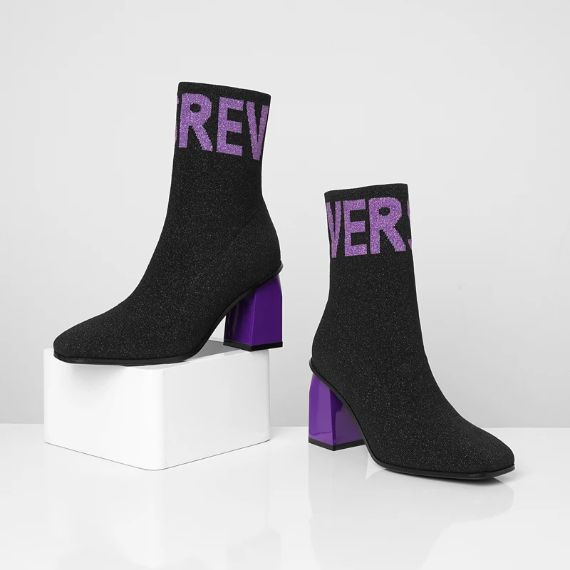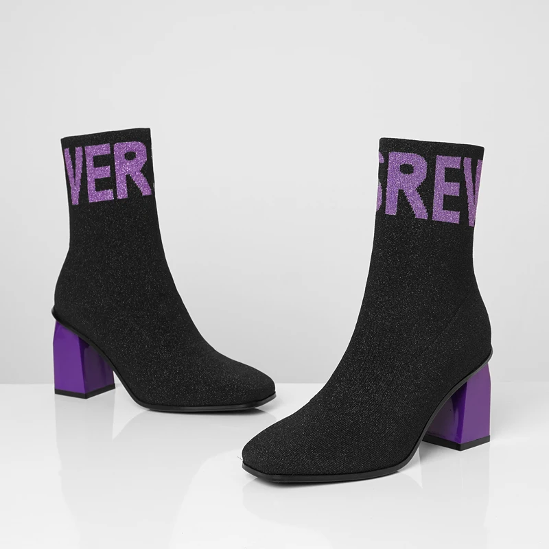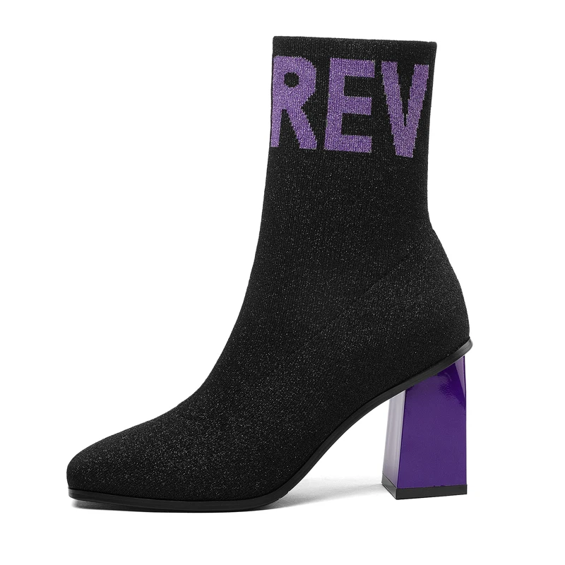 Женские ботильоны из шерсти; сезон весна-осень; женская обувь на высоком квадратном каблуке; Модные женские полусапожки с квадратным носком; Цвет фиолетовый, оранжевый; G092