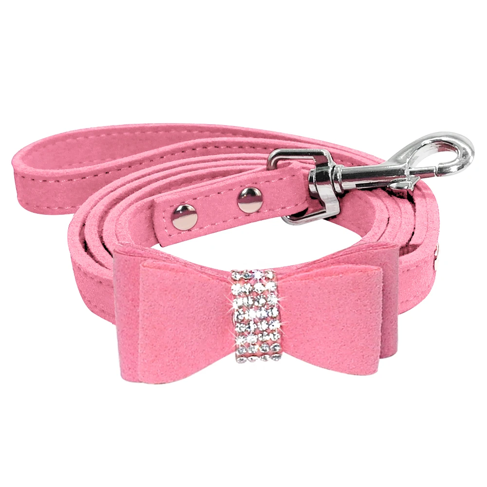 Замшевый ошейник и поводок для собак с бантом, стразы, ошейники для щенков, чихуахуа для маленьких и средних собак, кошек