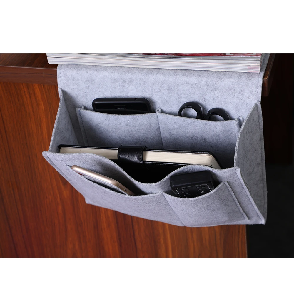 Просто вставьте прикроватный мешок для хранения между матрасом и прикроватной тумбочкой, диваном, столом и т. д., не требуется сборка, прост в использовании.