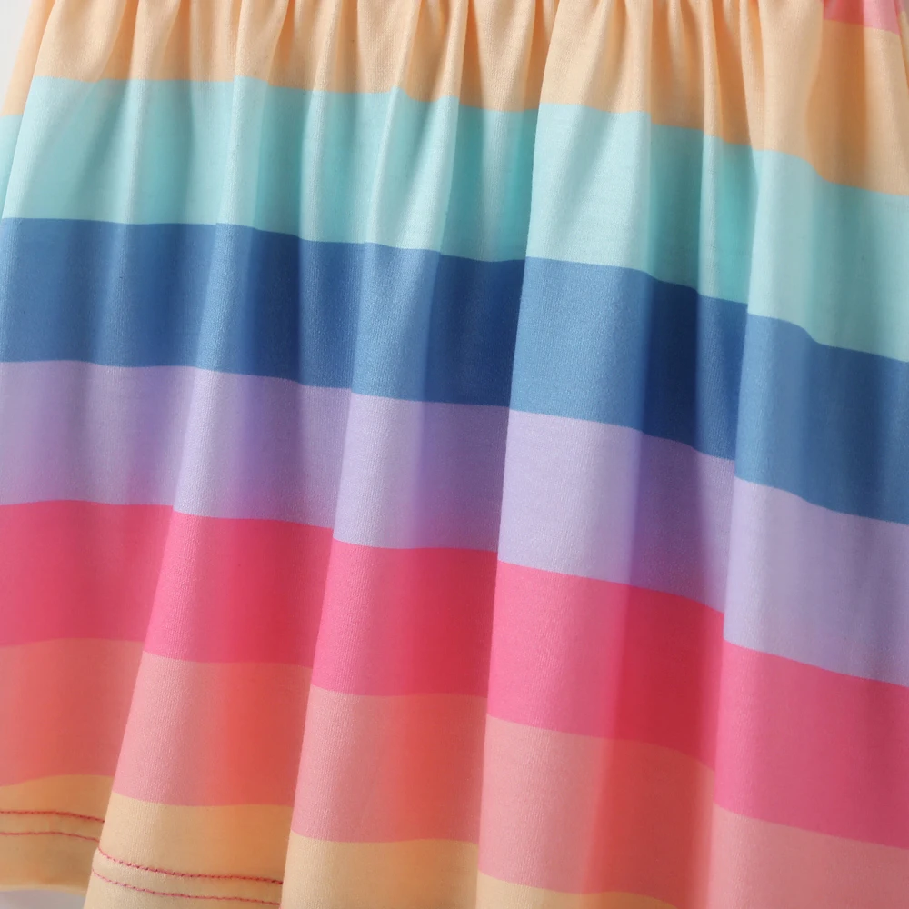 Это платье из высококачественного материала, очень удобно носить. Благодаря особому дизайну в радужную полоску ваша девочка будет выглядеть изящно и полна жизнестойкости. Быть милым и элегантнымДевочка, это платье-ваш первый выбор.