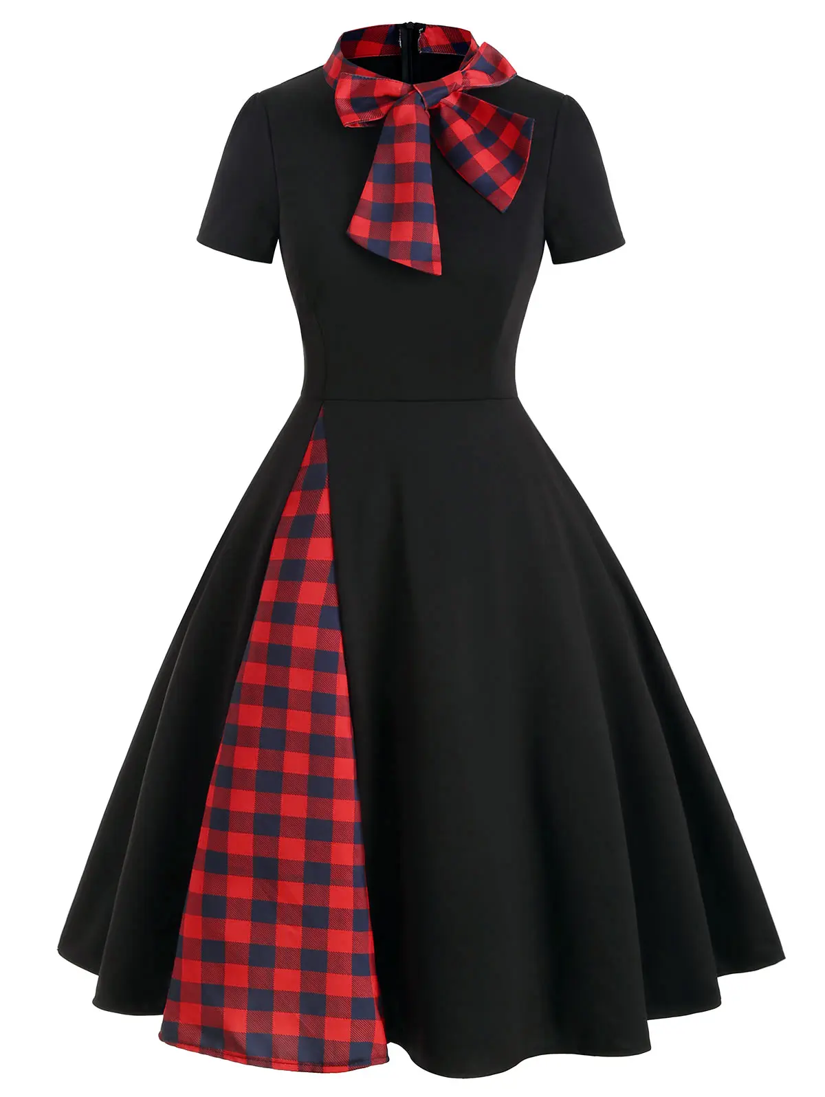 Wipalo галстук-бабочка для женщин 50 S 60 S винтажное платье с коротким рукавом женское офисное клетчатое платье трапециевидной формы в стиле ретро элегантное вечернее платье
