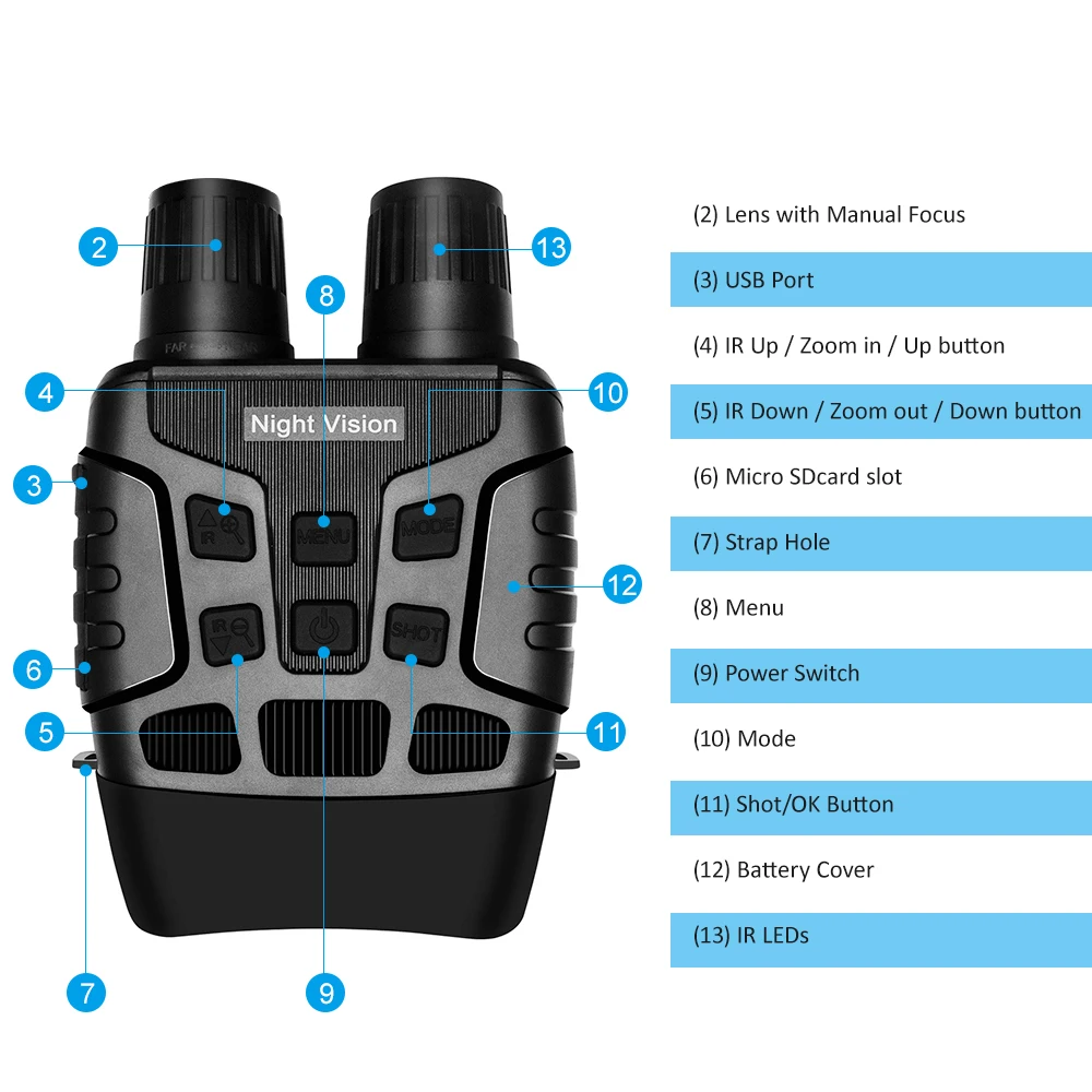 Этот цифровой бинокль ночного видения оснащен встроенной функцией камеры, которая может снимать фотографии и видео высокой четкости и отображать на 2,31 дюймовом TFT ЖК-экране. Вы можете использовать его днем или ночью и просматривать предметы в темноте до 200 - 300 м, а также регулировать инфракрасный осветитель для разных условий. Он идеально используется для охоты, кемпинга, пеших прогулок, спеллинга, наблюдения, наблюдения за животными и других видов деятельности в ночное время.
