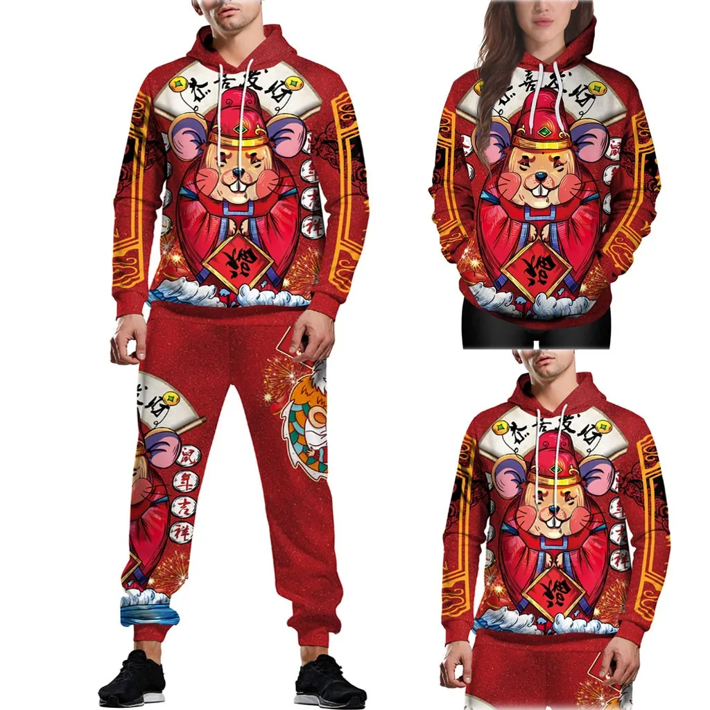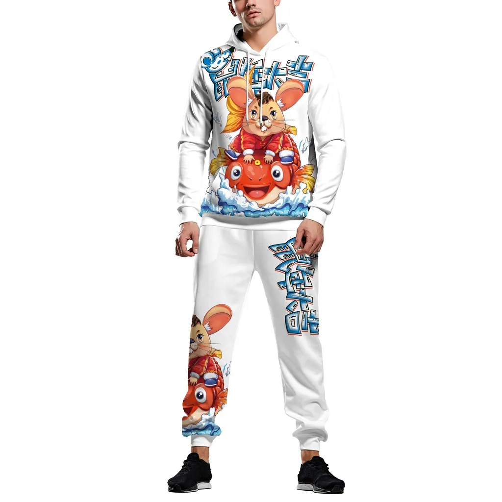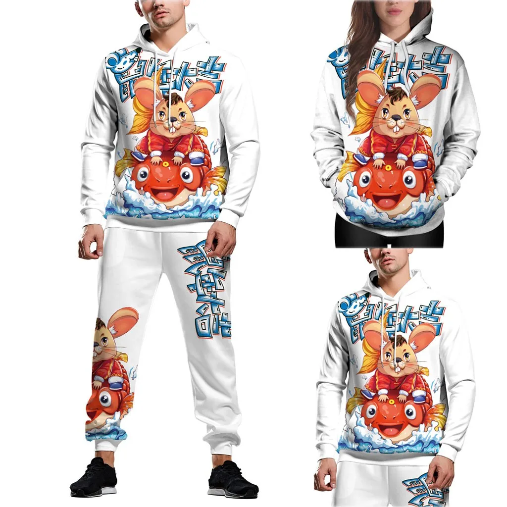 Горячая Пара новых 3D мода печатных с капюшоном Блузка с длинным рукавом Толстовка брюки комплект бесплатная доставка