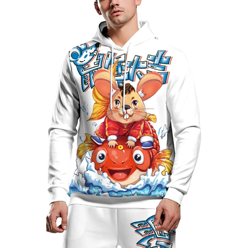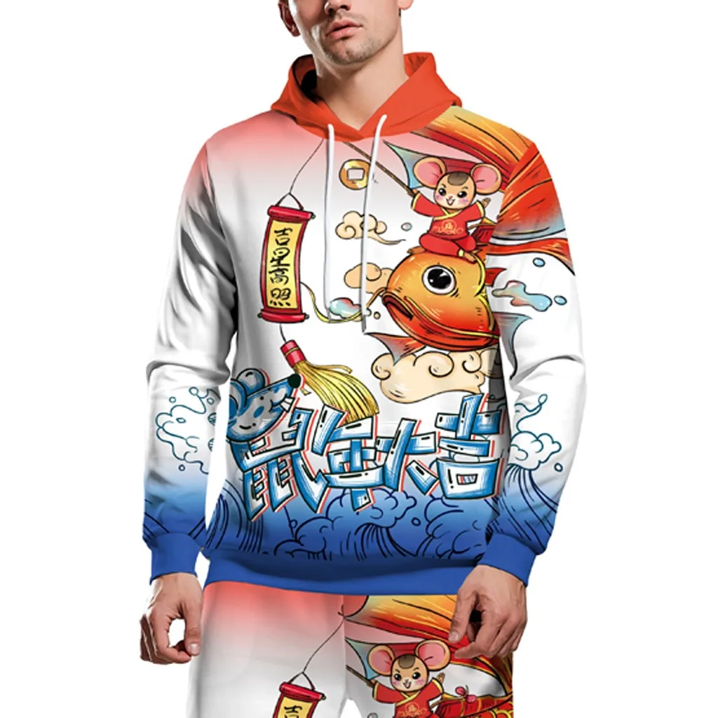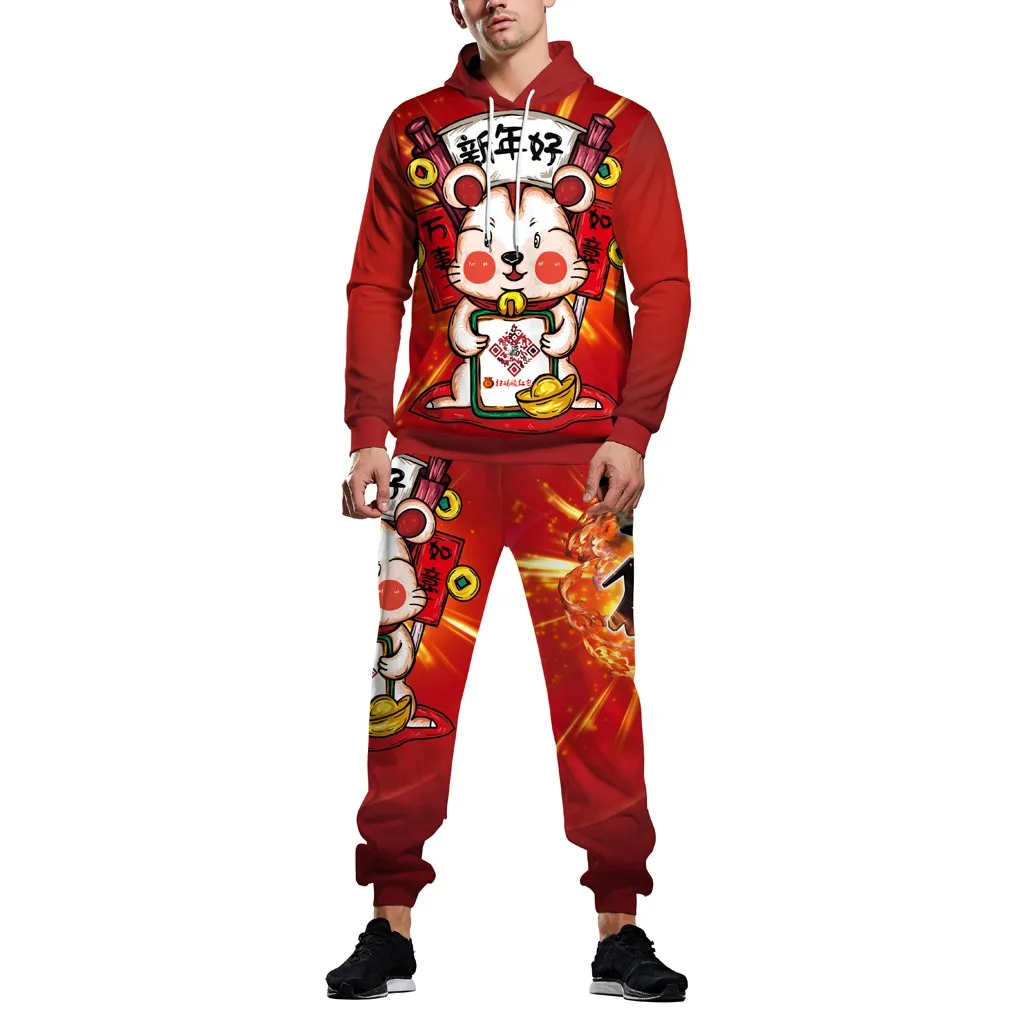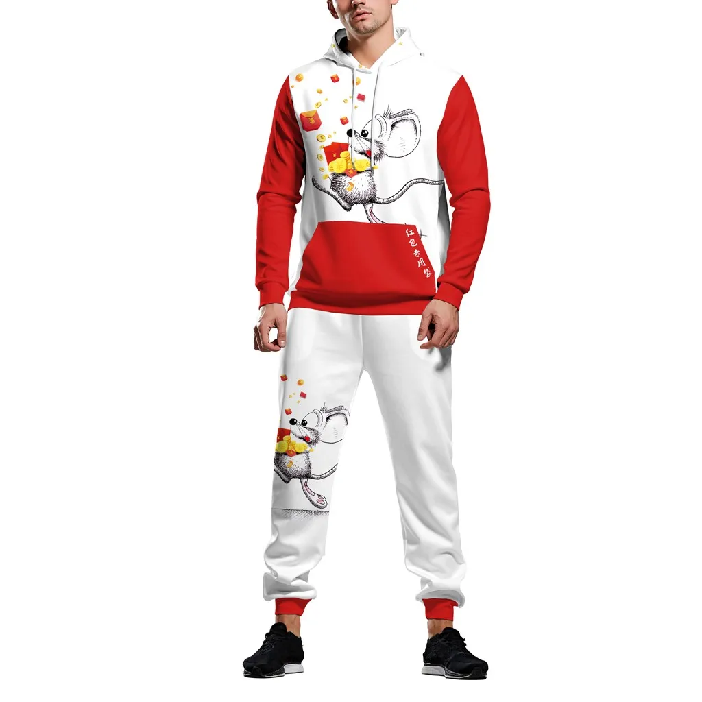 Горячая Пара новых 3D мода печатных с капюшоном Блузка с длинным рукавом Толстовка брюки комплект бесплатная доставка