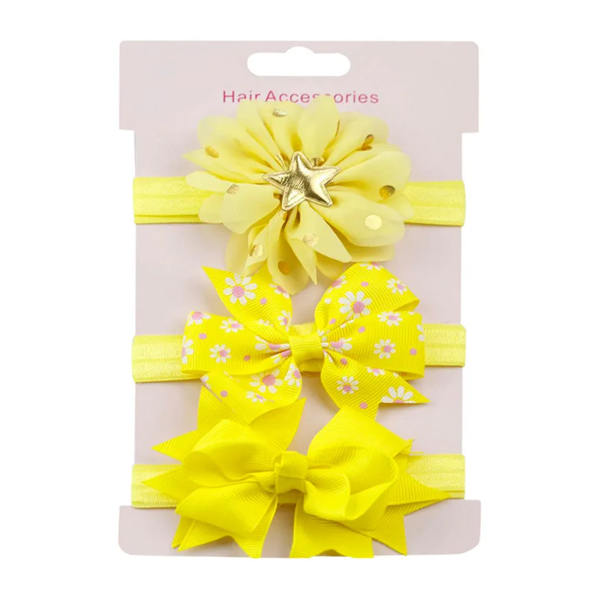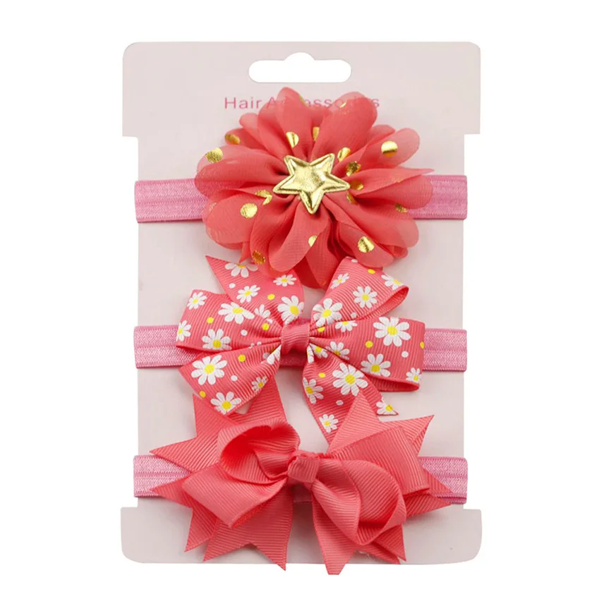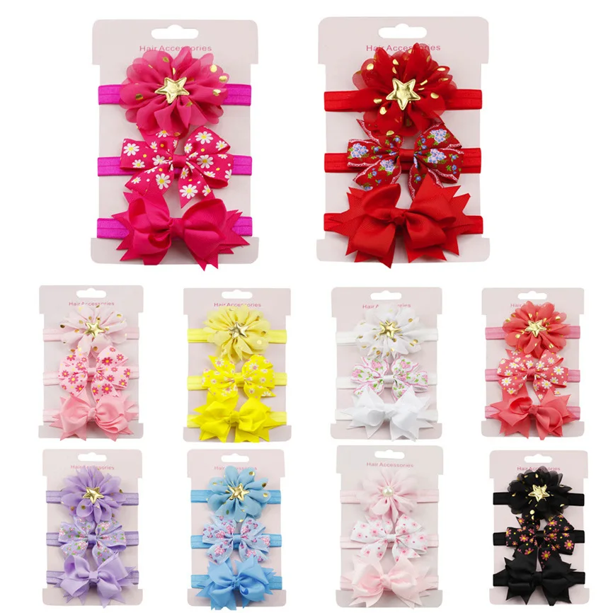 3 шт.; Эластичная повязка на голову с цветочным рисунком для маленьких девочекС бантомНабор для волос
