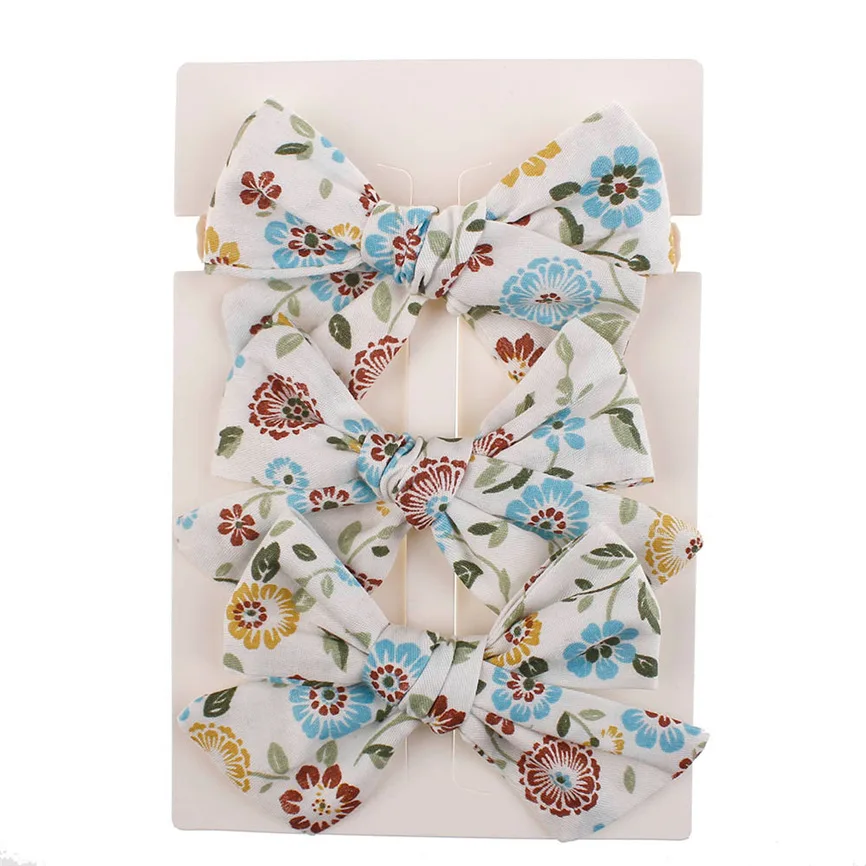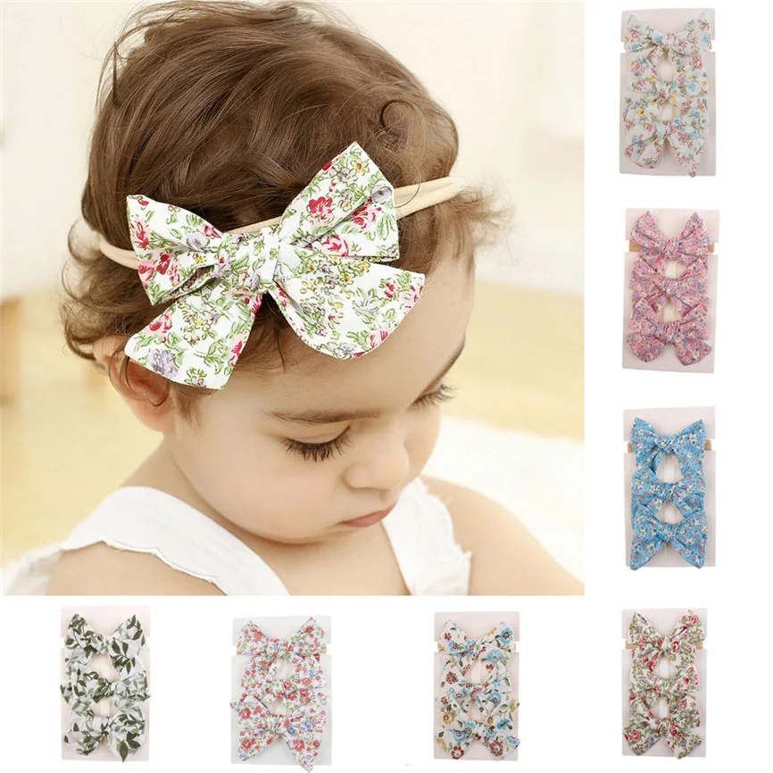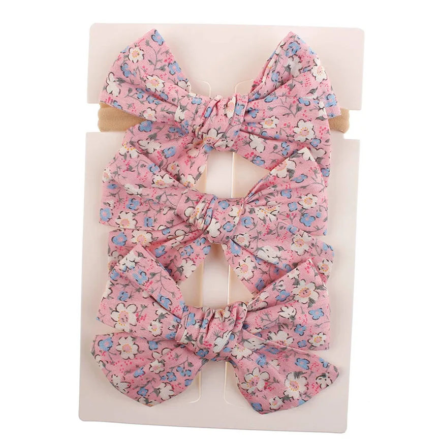 3 шт. Детская повязка на голову с цветочным рисунком для девочек, детские Эластичные аксессуары с бантом, набор для волос