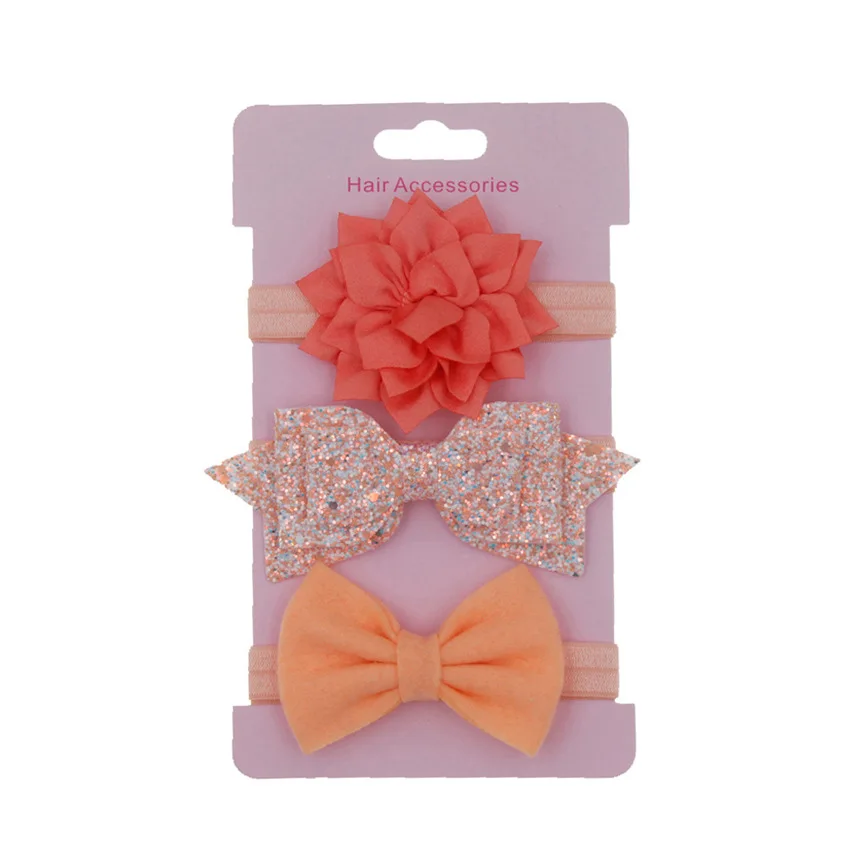 3Pcs Kids Elastic Floral Headband Hair Girls baby Bowknot Hairband Set