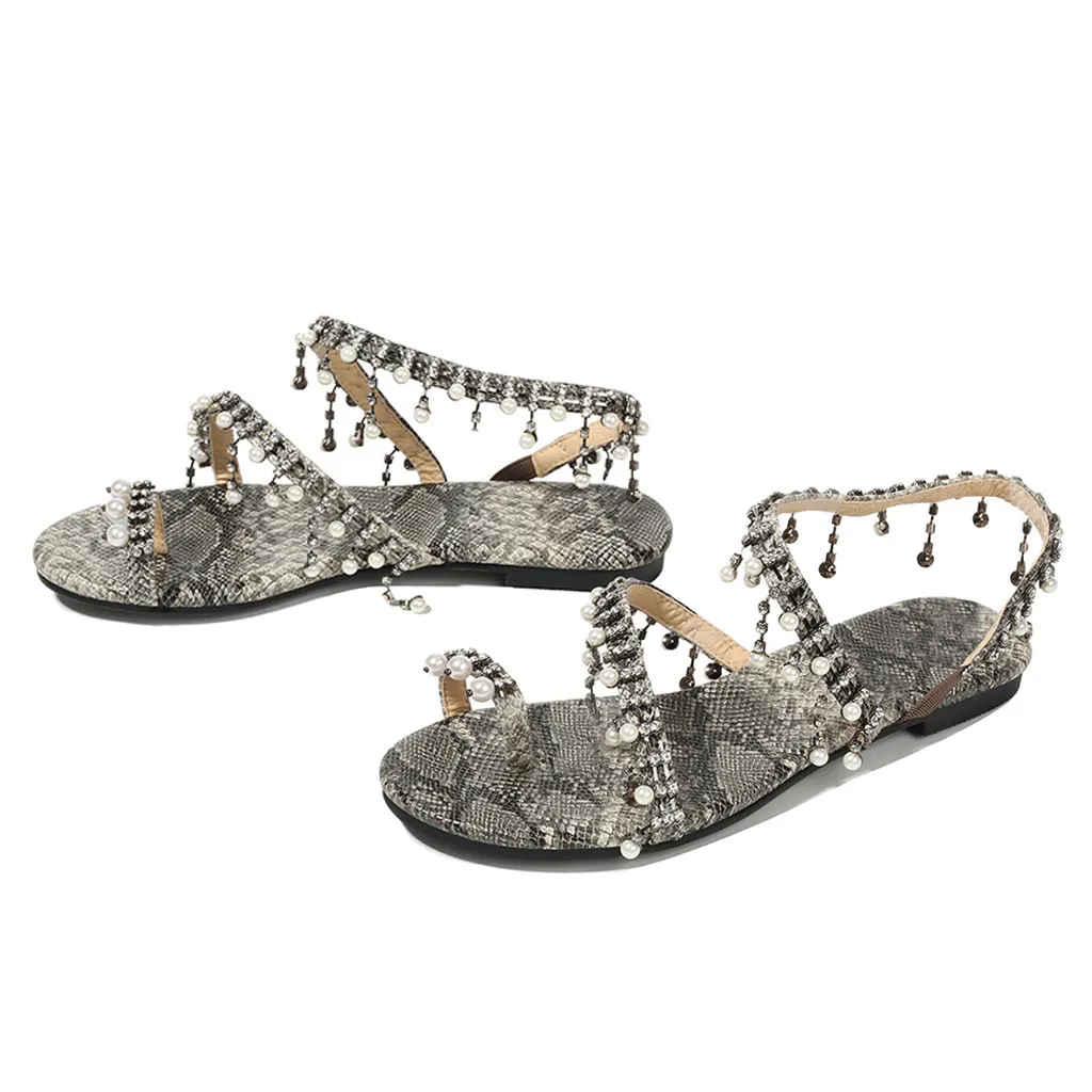 Женская обувь со змеиным принтом; Нескользящая дышащая обувь на плоской подошве с открытым носком; сандалии-светильник